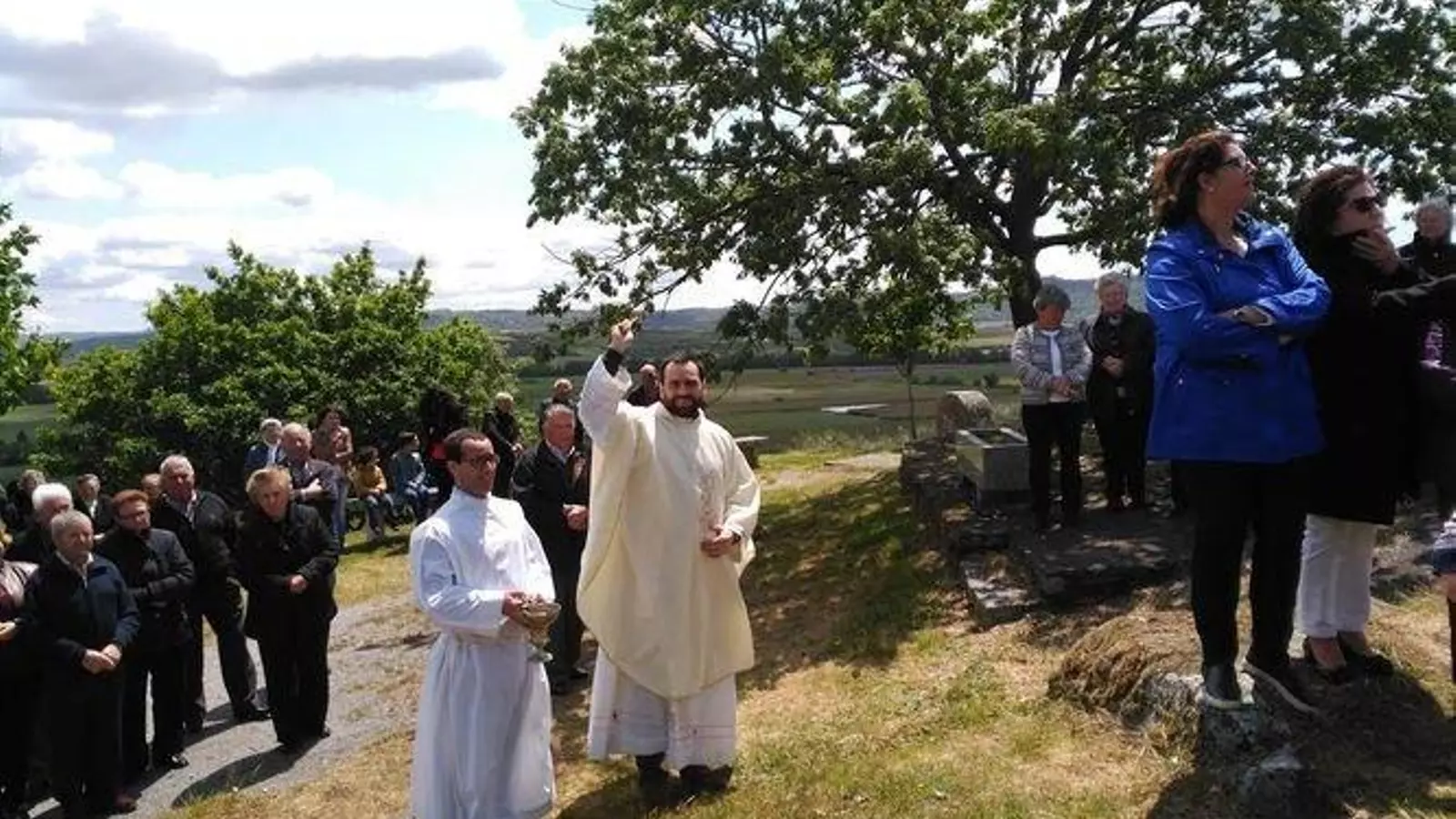 Un centenar de vecinos subieron al Outeiro en procesión, portando la imagen de la Virgen de Fátima, donde tuvo lugar una misa presidida por primera vez por el nuevo párroco Jorge Valado, que estuvo acompañado por un seminarista y un diácono.