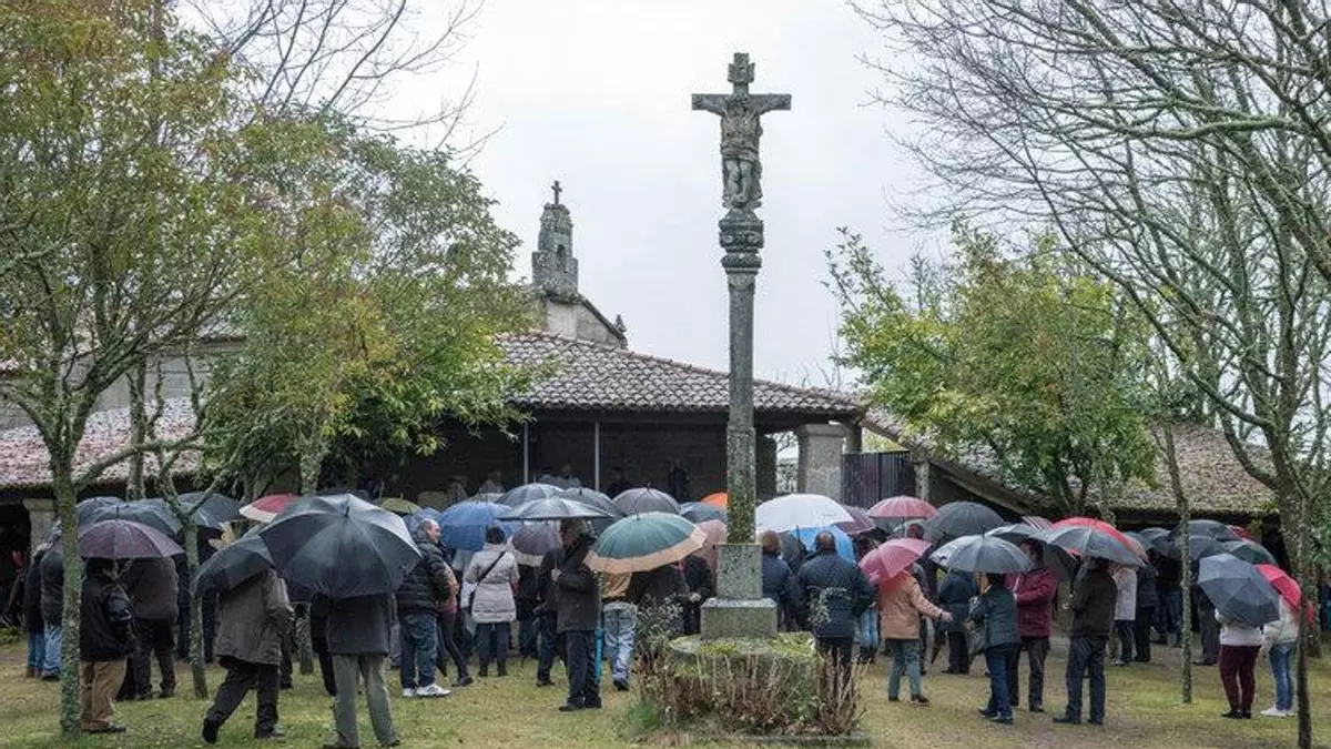 Los cientos de romeros que subieron a honrar al "abogoso santiño", después de pasar por la capilla y depositar los exvotos, seguían con devoción las tres misas que se desarrollaron en el recinto, refugiados unos bajo los alpendres que rodean el recinto, mientras otros preferían aguantar bajo los paraguas frente al altar en esta "fermosa catedral natural á que vindes testemuñar a vosa fe", les recordaba monseñor Carballo.
