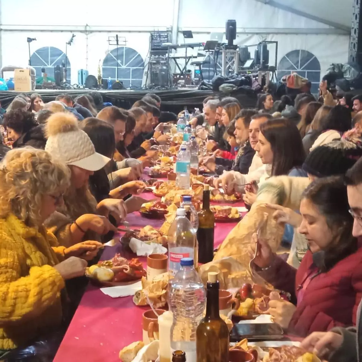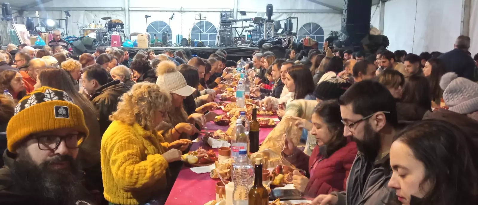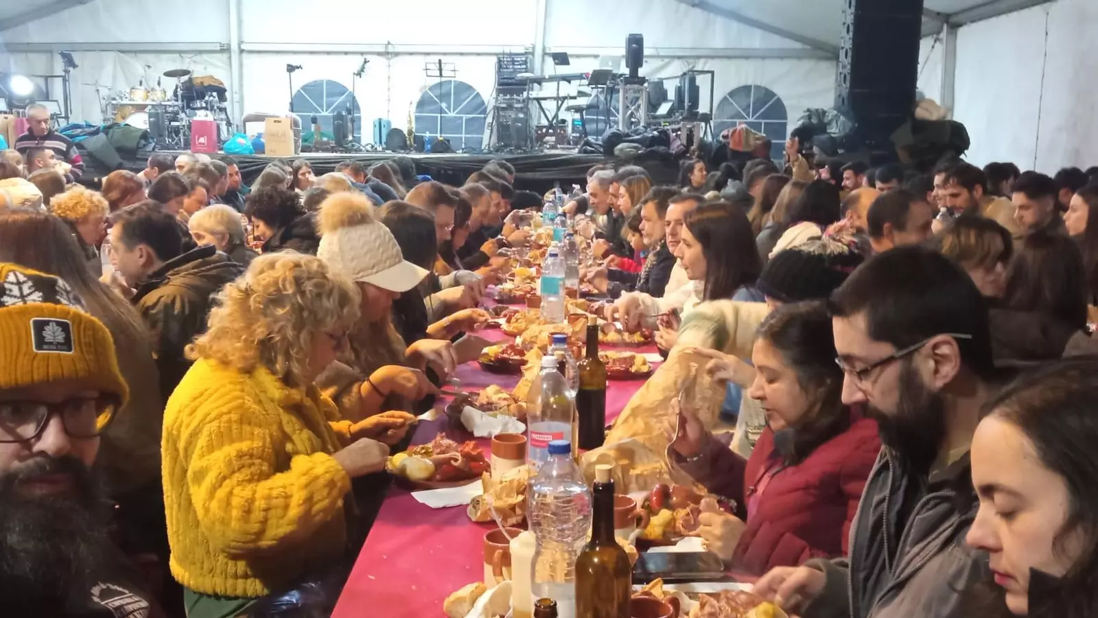 Desde poco antes de las nueve de la noche, la carpa comenzó a llenarse de comensales hasta completar el aforo, con alrededor de 450 personas dispuestas a disfrutar de una velada en la que la gastronomía tradicional fue la gran protagonista.