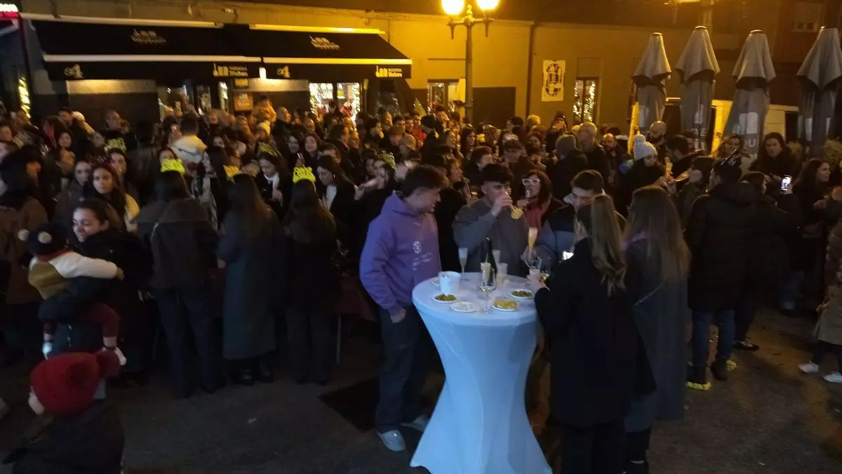 A Rúa despidió el año con un brindis colectivo de cava procedente de Almendralejo, localidad extremeña con la que el municipio está hermanado, en un acto celebrado en la Praza do Concello que reunió a numerosos vecinos.