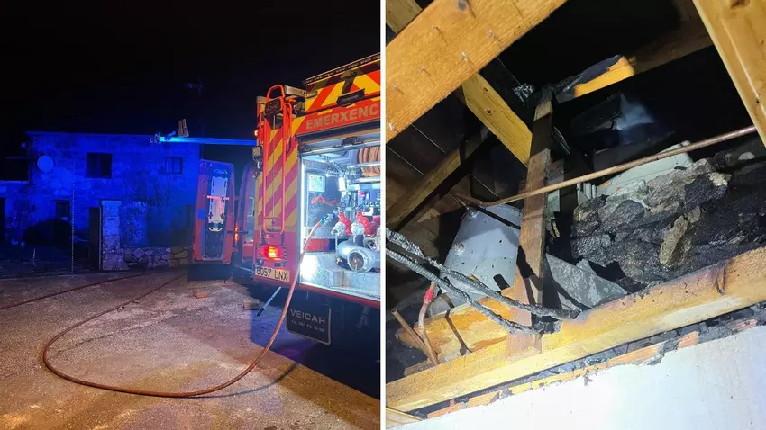 Los servicios de emergencia intervienen en un incendio en Ponte (A Veiga). La rápida actuación del GES evitó que el fuego en una chimenea calcinara por completo el inmueble.
