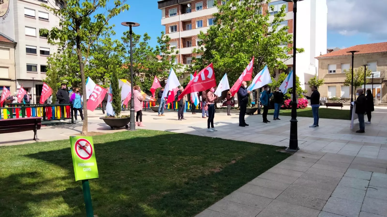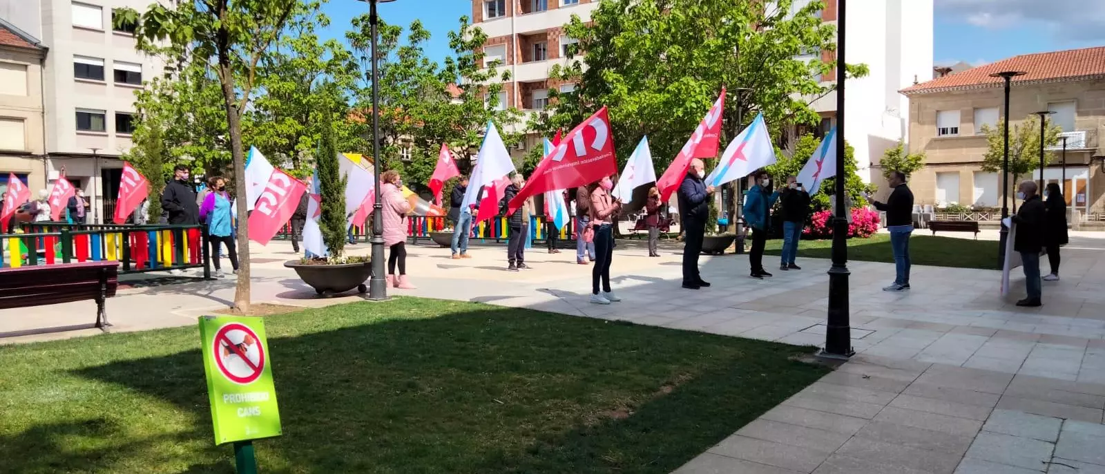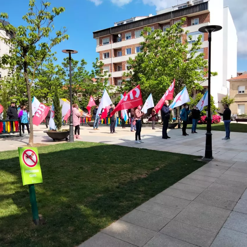 Frente al concello de Verín, un grupo de vecinos se moviliza este 1 de mayo. FOTOS:CEDIDAS