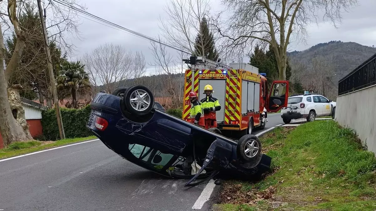 A las 11:01 horas de la mañana de este miércoles, 25 de febrero, se informaba de un accidente de tráfico que dejaba un herido en Requeixo de Valverde, en Allariz. El vehículo volcó en la OU-0108 y el conductor pudo salir del interior sin necesidad de excarcelación, aunque el 112 llamó a los bomberos de Xinzo por si acaso. La persona fue trasladada.
