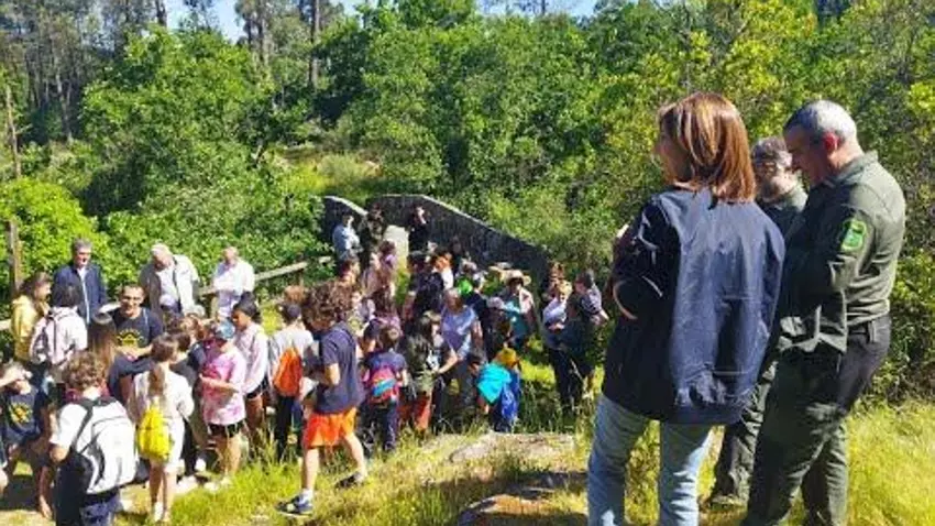 El río Vilameá, en Lobios, concentró ayer los actos organizados en el marco del Día Europeo de los Parques Naturales y que incluyó una ruta de senderismo por esta zona del Xurés con identificación y avistamiento de la flora y fauna local, incluida la suelta de tres águilas ratoneras o “miñatos”, procedentes del Centro de Recuperación de Fauna O Rodicio, en Maceda.