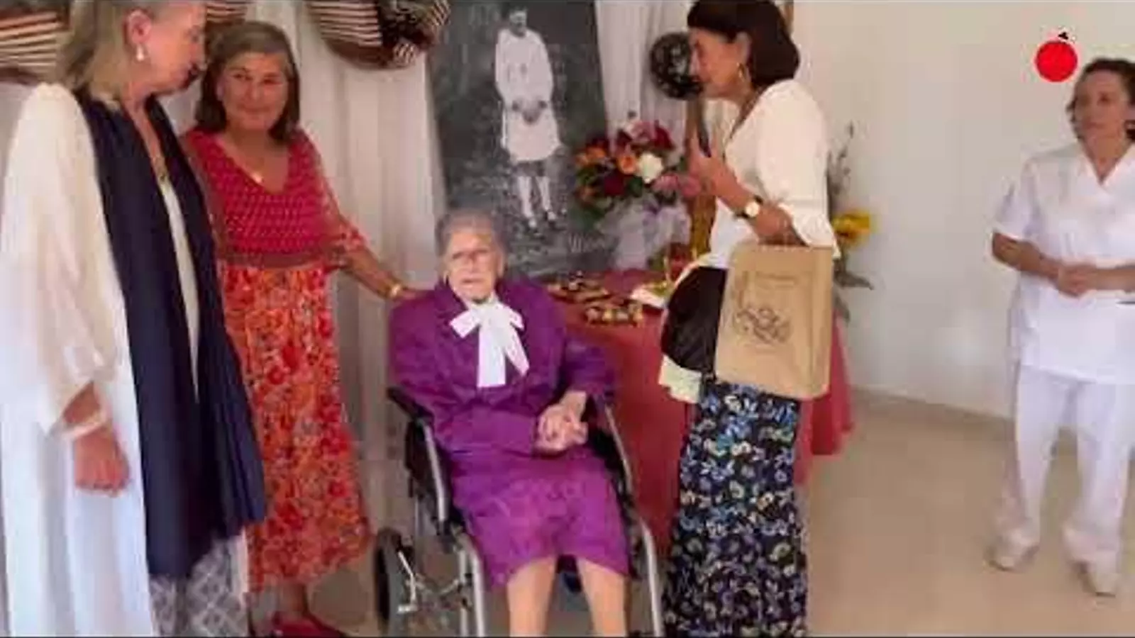 Coqueta, divertida y con una memoria envidiable. Mercedes Suárez Paz celebró ayer sus 105 primaveras rodeada de familiares y amigos, entre los que se encontraba el alcalde Ramón Alonso, trabajadoras y residentes de las viviendas comunitarias Don Pepe de Entrimo con quienes comparte su día a día. Una celebración donde no faltó el dulce, “son moi golosa”, confesó; y la sidra para el brindis. “O prefiro antes que o champán”, comentaba la ya oficialmente abuela de Entrimo y, probablemente, de la comarca de A Baixa Limia de la que es originaria y donde reside desde hace una década, tras toda una vida en Vilaza (Verín).