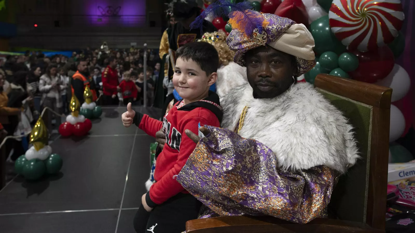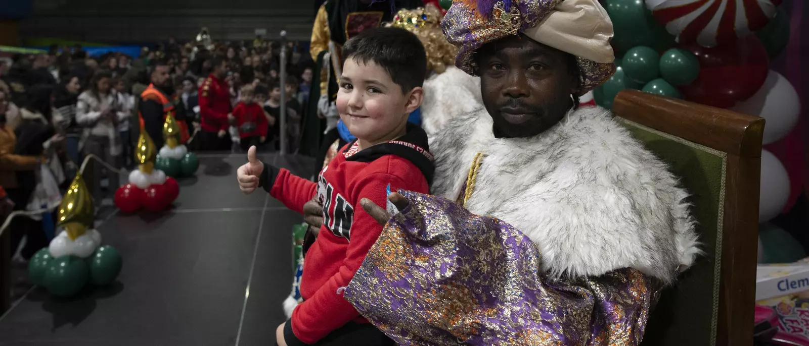 Baltasar recibiendo a un niño vecino de Barbadás.