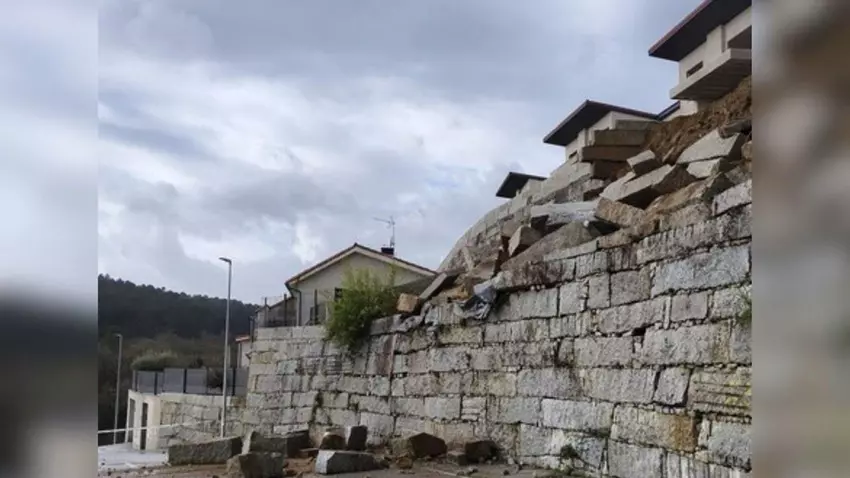 Un muro de la urbanización A Moura se derrumbó este domingo alrededor de las 11:30 horas, aunque gracias a la rápida intervención del único policía de servicio en Barbadas no se produjeron daños personales.