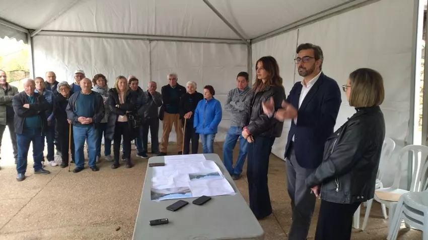 El conselleiro de Presidencia, Xustiza e Deportes y la directora xeral de Administración Local, Diego Calvo y Natalia Prieto, se desplazaron ayer hasta Casoio para anunciar la reforma de la carretera, un acto, en el que, además de la alcaldesa, también estuvo presente una representación del Clúster de la Pizarra que encabezó su presidente, Eliseo López; la ingeniera que redactó el proyecto, Claudia Sánchez-Lagarejo; y vecinos de la aldea.