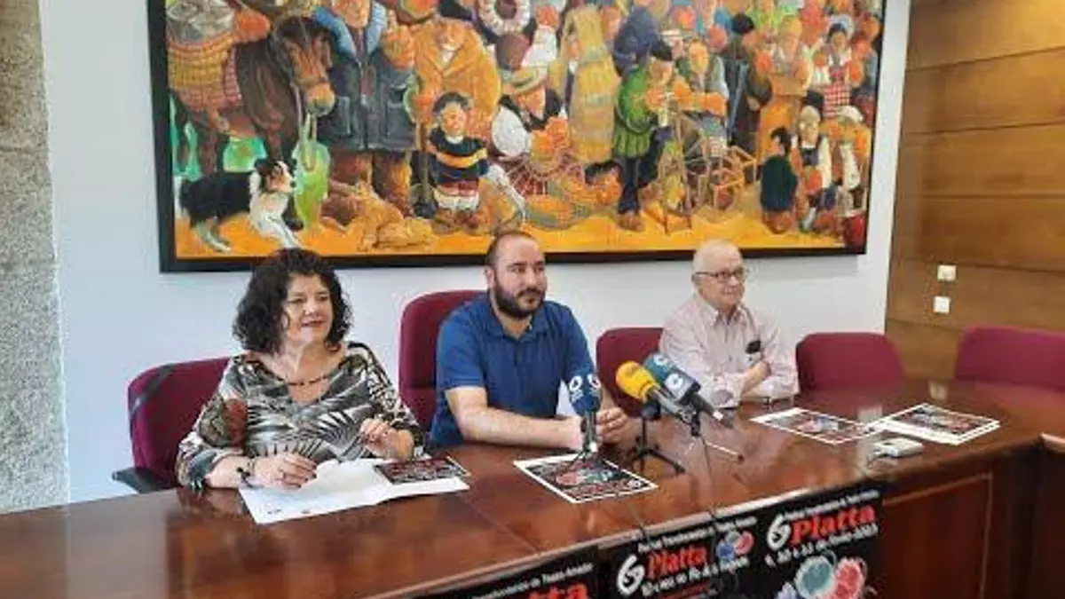 El Festival Transfronterizo de Teatro Amador fue presentado por la presidenta de la federación, Chelo Pampillón; el concejal de Cultura, Diego Fernández, y el director de Tiruleque Grupo de Teatro, José Prada, a quienes la presidenta agradecía su colaboración y también a la Xunta la cesión de la Residencia de Tempo Libre como alojamiento.