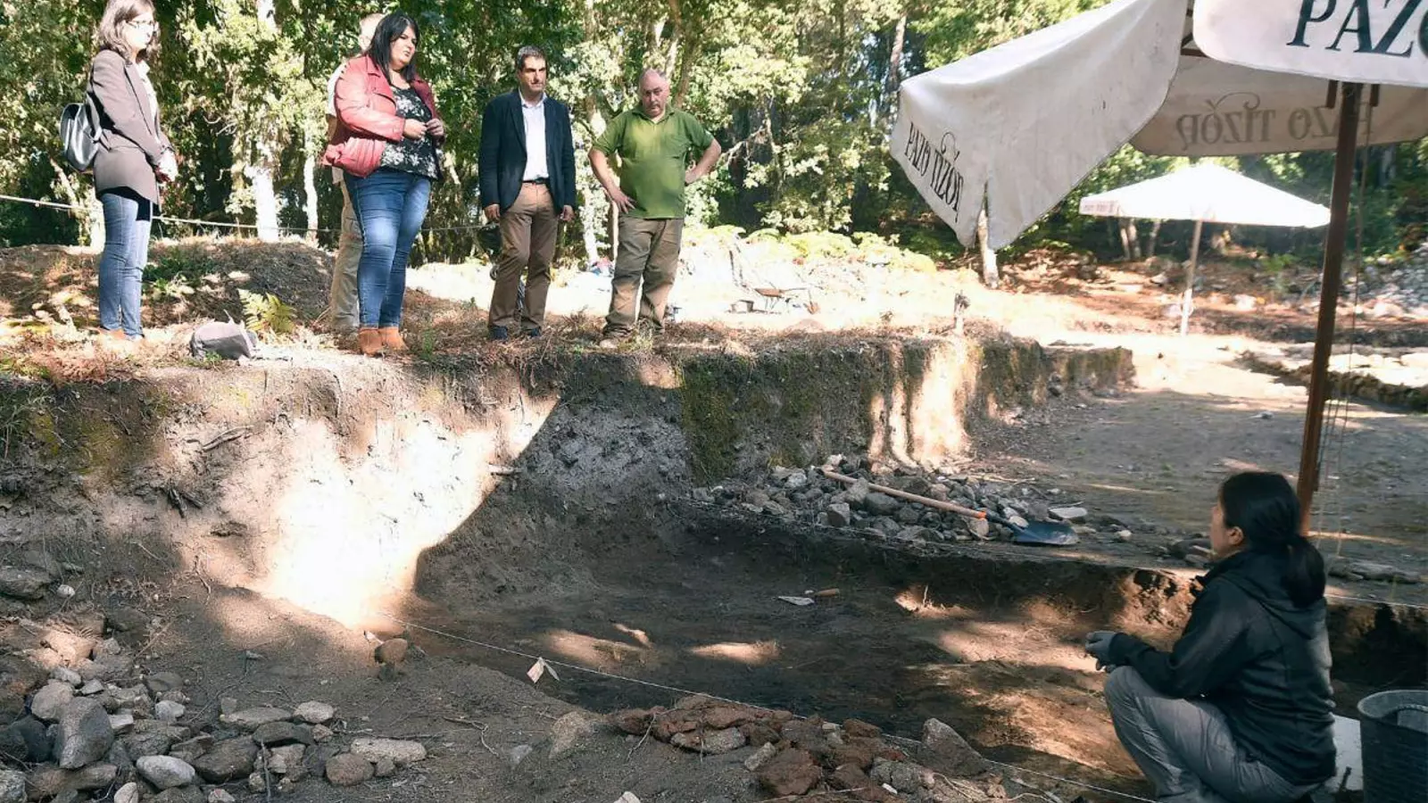 El delegado territorial da Xunta en Ourense, Gabriel Alén, acompañado de la alcaldesa, Patricia Torres, supervisó ayer los trabajos en el Castro de Cameixa, en donde la Consellería de Cultura, Educación, Formación Profesional e Universidades financia esta nueva fase de excavaciones con cerca de 18.000 euros.