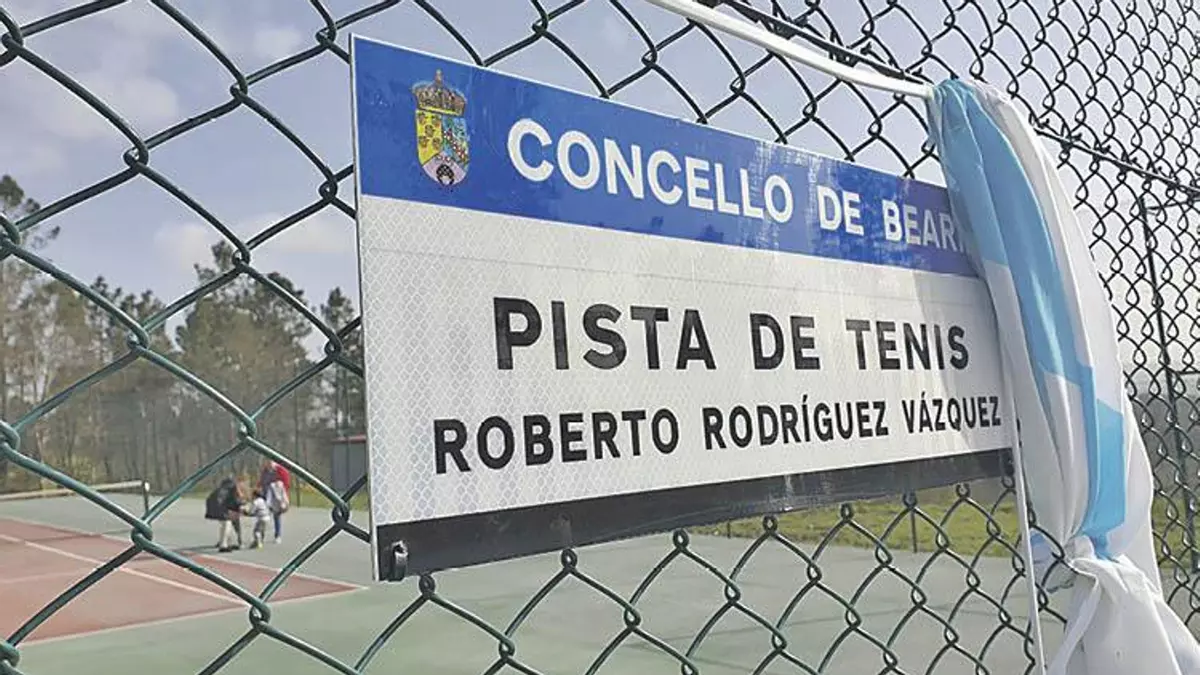 O pleno da Corporación municipal de Beariz, en sesión celebrada o 11 de marzo de 2020, aprobou por unanimidade adicarlle o nome de Roberto Rodríguez Vázquez á pista de tenis ubicada na paraxe de A Goberna. En consecuencia, celebrouse un acto protocolario de descubrimento da placa co seu nome, acto que contou coa presenza do presidente da Federación galega de Tenis, José Mosquera, de membros da corporación municipal, da súa familia e veciños do concello.