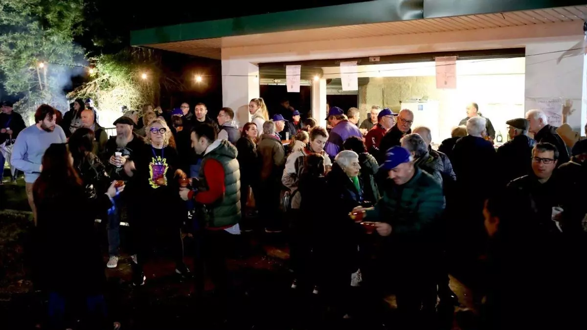 Fueron cientos de personas las que se acercaron al campo de la fiesta de la localidad en donde por tres euros adquirían una taza o por dos euros más también una gorra conmemorativa, y así pudieron acceder a probar la veintena de vinos de manera totalmente gratuita, además de un pincho de panceta y castañas asadas, porque esta fiesta no solo sirve de promoción de los vinos, sino que también se fundió con un gran magosto popular recuperando una vieja tradición de los antepasados por estas fechas.