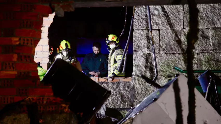 La alarma saltó alrededor de las 17,15 horas, cuando un vecino avisó de un derrumbe en una vivienda. “Recibimos unha chamada dun veciño decindo que se viñera abaixo unha parte adosada que ten a casa, onde había un baño e unha planchada grande”, explicó Jaime Sousa, alcalde de Cartelle. Según detalló el regidor, la estructura colapsada tenía debajo un espacio destinado para animales y almacén.