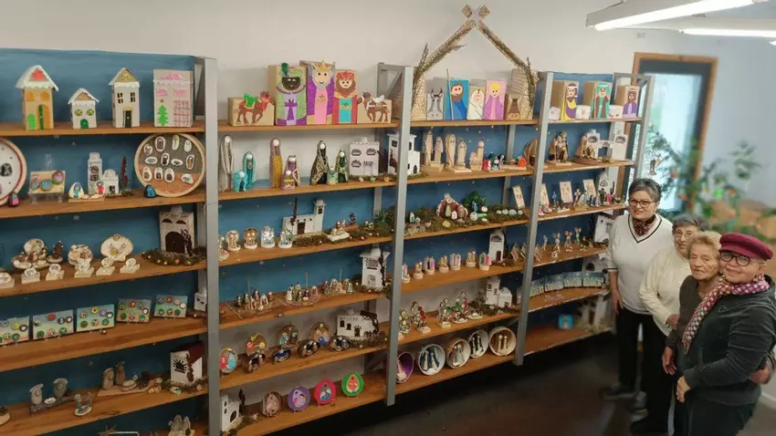 En la muestra tendrán especial protagonismo los pesebres en miniatura que han preparado para esta Navidad: 24 estantes con nacimientos elaborados con materiales tan diversos como madera, tornillos, conchas, cápsulas de café, corcho, cartón o botellas recicladas.