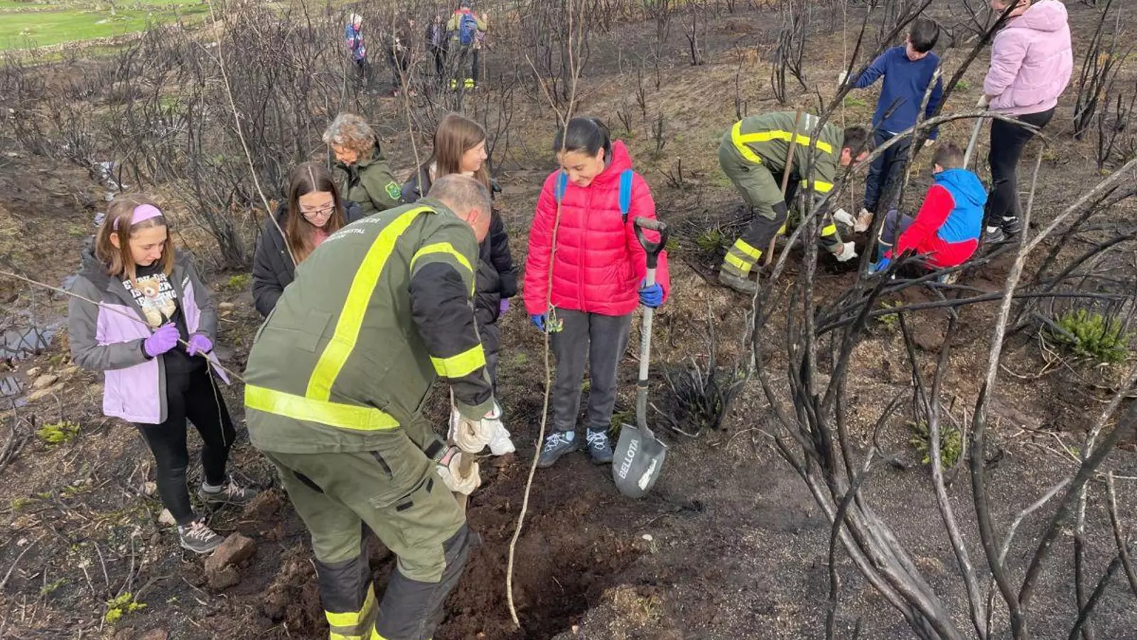 Durante la jornada, el alumnado pudo observar imágenes de distintas especies animales captadas mediante cámaras de trampeo, una actividad que despertó gran interés y permitió acercarse de forma directa a la biodiversidad del entorno. Además, participaron activamente en la repoblación de un pequeño bosque, plantando más de medio centenar de árboles autóctonos, cada uno debidamente etiquetado como parte del proceso de aprendizaje.