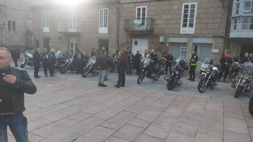 En la villa de San Rosendo, los aficionados aparcaron sus motos y se unieron en una comida en el refectorio del claustro barroco, a base de empanada, mejillones y pulpo.