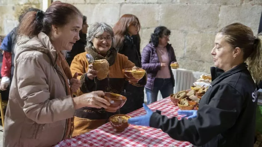 En total, más de 350 vecinos y visitantes llenaron el refectorio para disfrutar de un menú a base de este plato de proximidad, con garbanzos de A Bola. Además, el menú del lunes también incluyó empanada de ternera, bica, vino y chupitos.