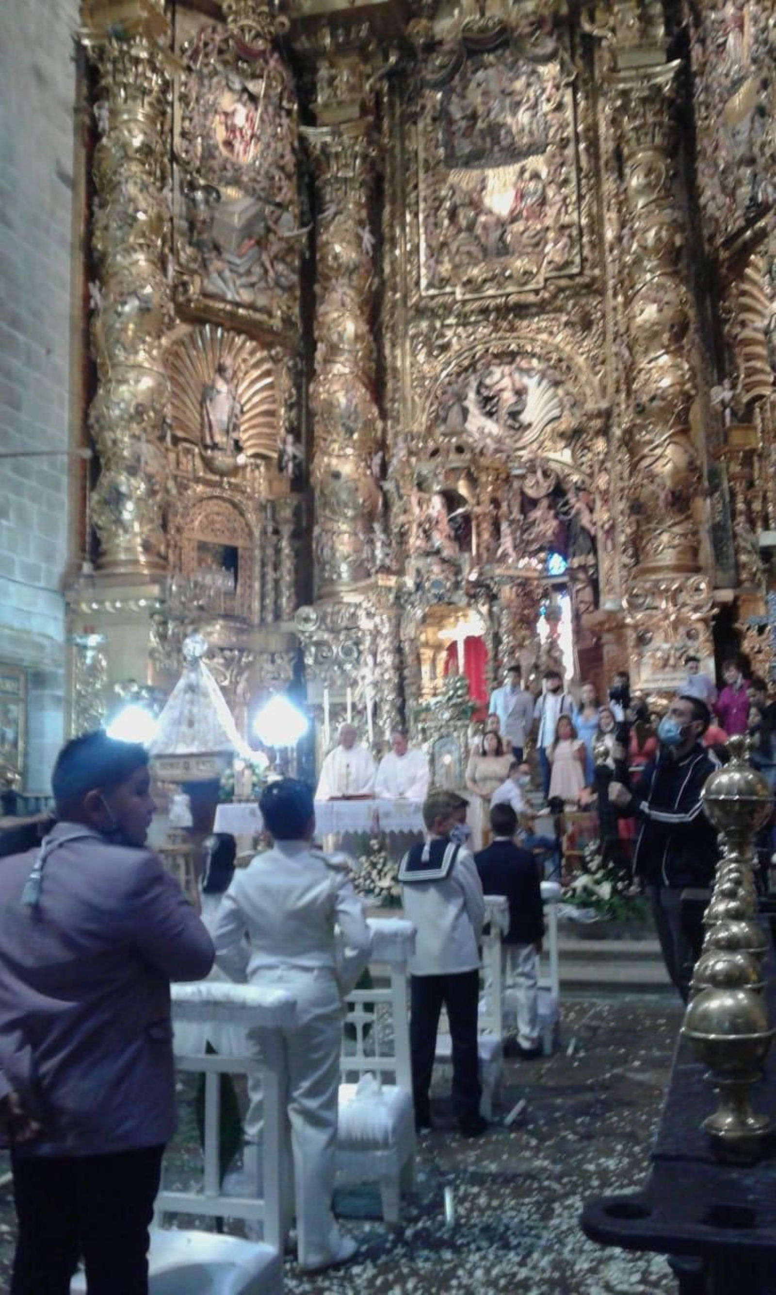 Un total de 15 niños y niñas de Celanova celebraron este domingo su Primera Comunión en la iglesia monacal. Las celebraciones se suspendieron en primavera por el covid, pensando que en agosto la situación iba a estar mejor.
