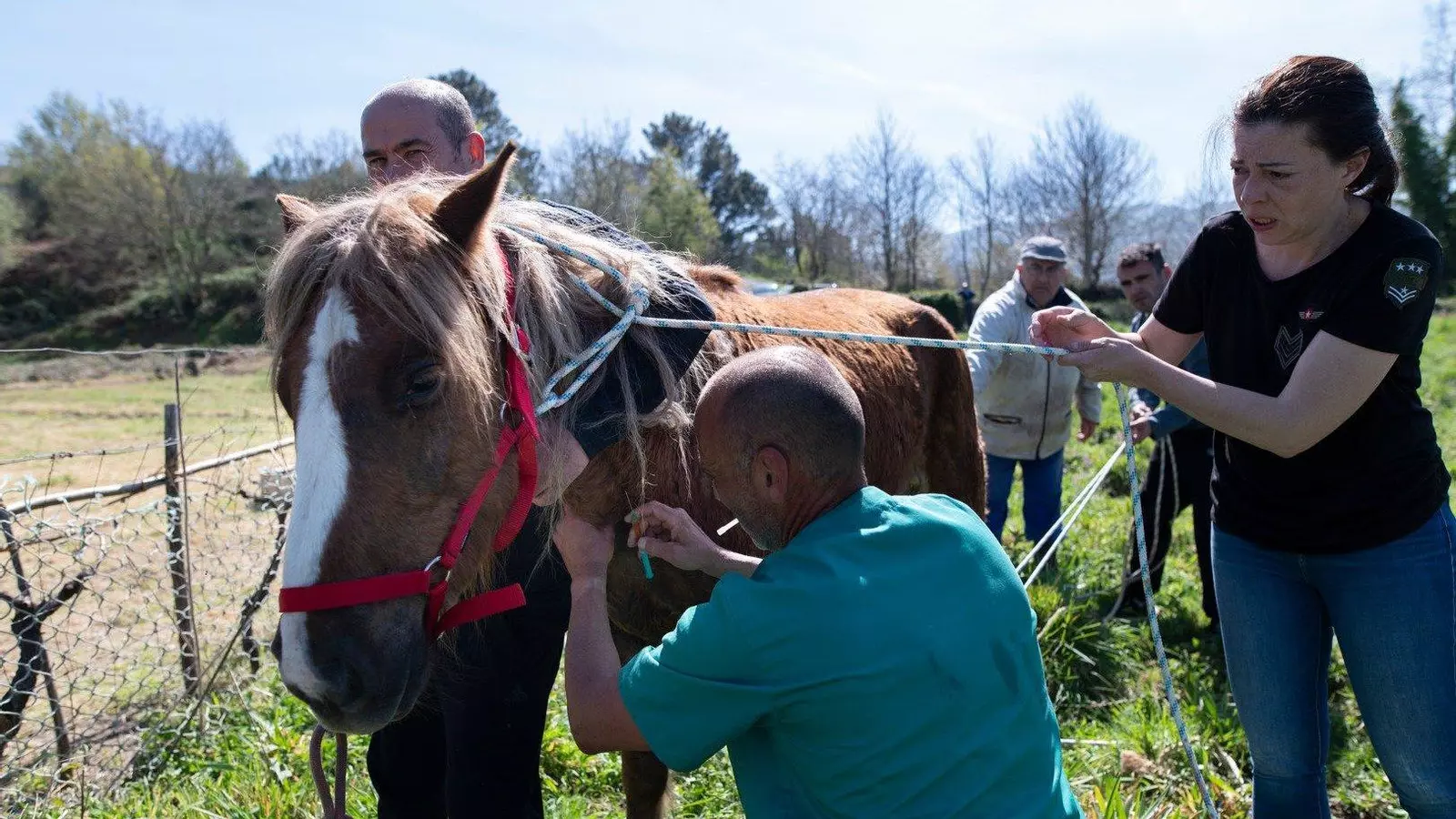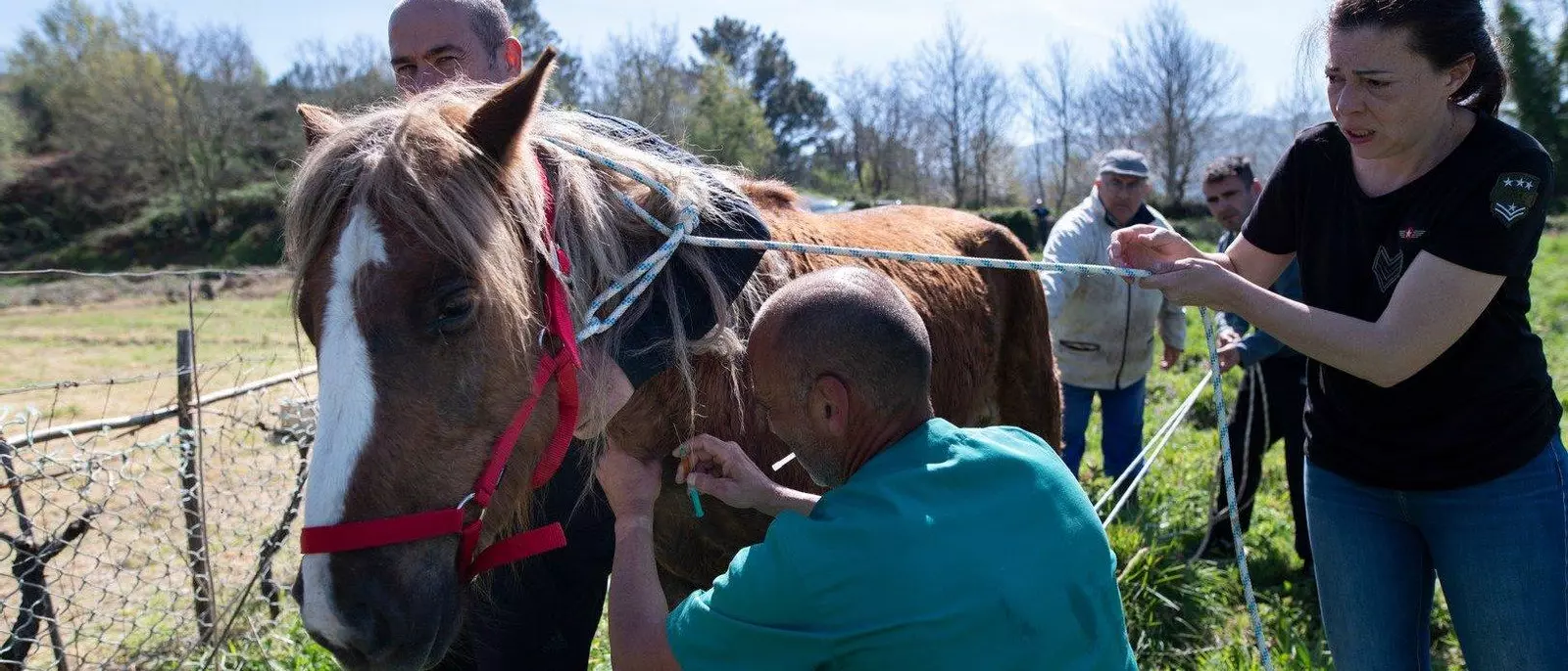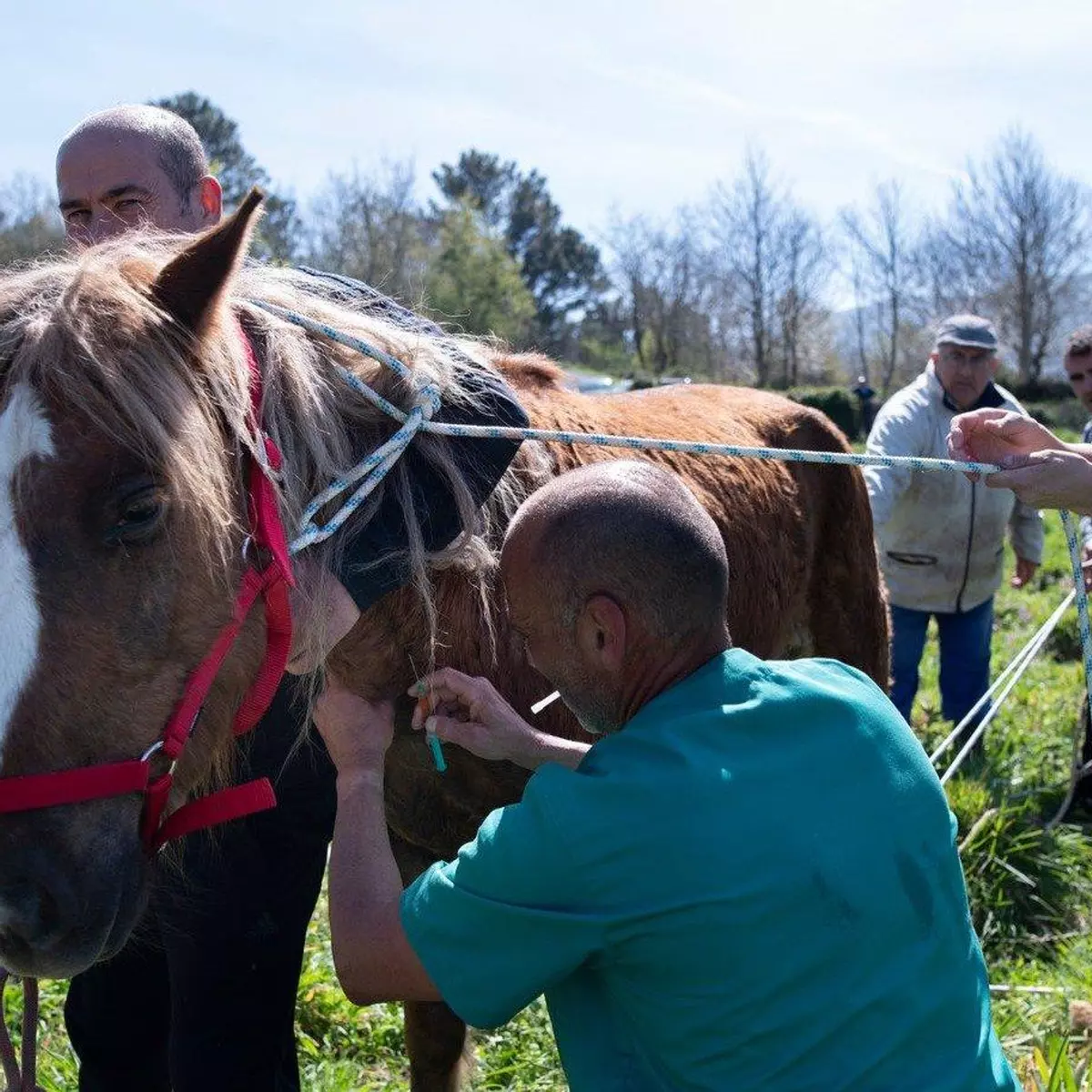 La yegua, que vive en semilibertad, se había dañado una de sus patas traseras con los restos de una trampa para jabalíes.