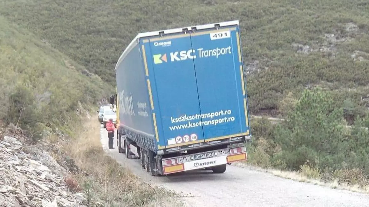 Según fuentes policiales, el conductor -también rumano- se dirigía desde A Gudiña hasta Italia, tras haber descargado material para las obras del AVE. Guiado por GPS, se equivocó y tomó equivocadamente esta carretera local; condujo por ella hasta que cortó tres neumáticos de lado izquierdo contra una tajea.