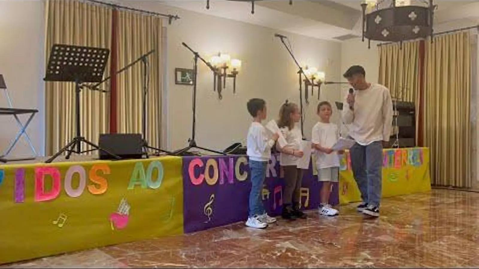 Madres, padres, alumnos, profesorado, familiares y amantes de la educación del rural se dieron cita ayer en el Parador de Verín -la cita iba a ser en el Castillo de Monterrei pero la lluvia obligó a cambiar el lugar- para disfrutar del I Concierto del CRA Monterrei. El primer evento que organiza este centro rural, con mucho cariño y pasión, para promocionar este centro rural agrupado (CRA) con aulas en Vilaza, Pazos y Vences.