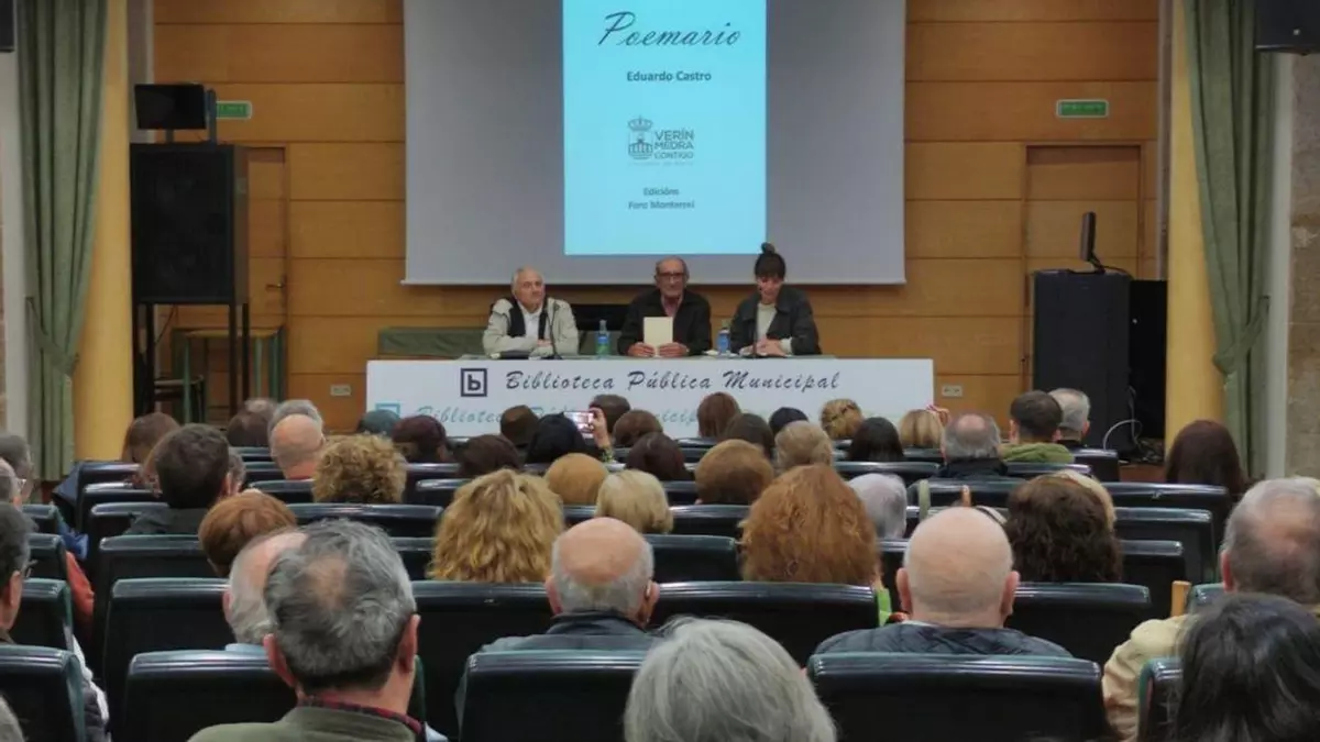 El Salón de Actos de la Casa de la Cultura de Verín acogió la presentación de la obra “Poemario” de Eduardo Castro. Durante el acto la concejala de Cultura, Samanta Barreira y el escritor y prologuista del libro, Alberte Blanco, arroparon al creador ante el público que se dio cita en el recinto cultural.