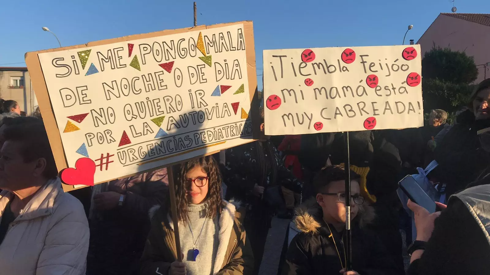 las pancartas que portaban los pequeños se podían leer frases como "é ben triste pensar que no nos queren coidar", o "si me pongo mala de noche o de día no quiero ir por la autovía". Y es que una de las principales preocupaciones en Verín es la ausencia de un servicio de Urgencias Pediátricas, ya que, en la actualidad, tan sólo existen consultas de estos especialistas en los ambulatorios de la villa y en horario de 08,00 horas a 15,00 horas. La lucha no cesa en la capital del Támega.