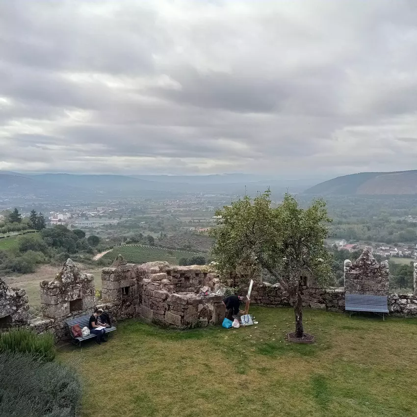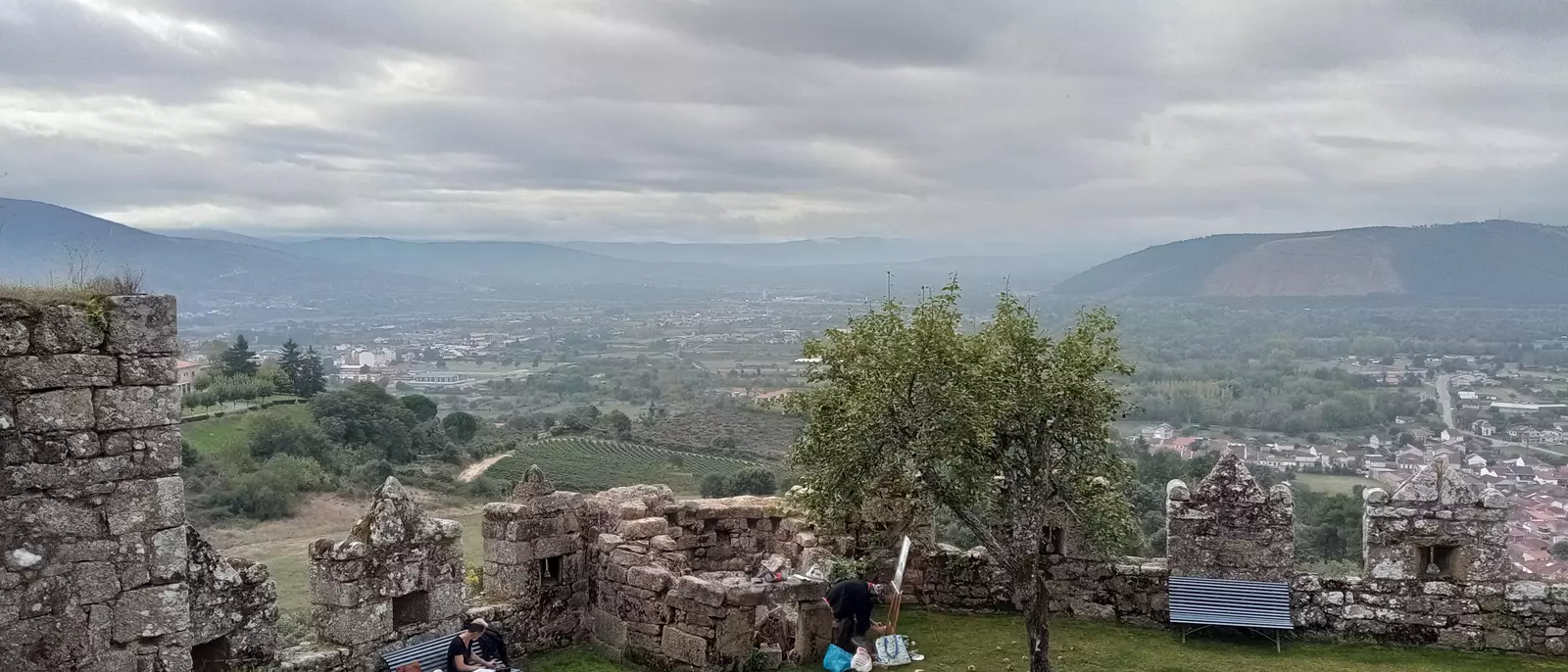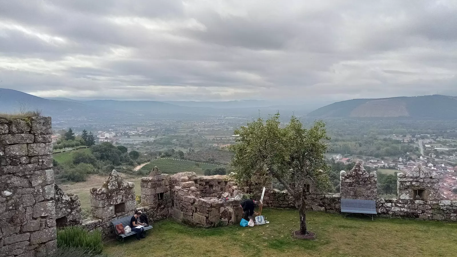 Los participantes en el concurso de pintura al aire libre en el Castillo de Monterrei ya han encontrado ubicación y se encuentran trabajando en sus lienzos.