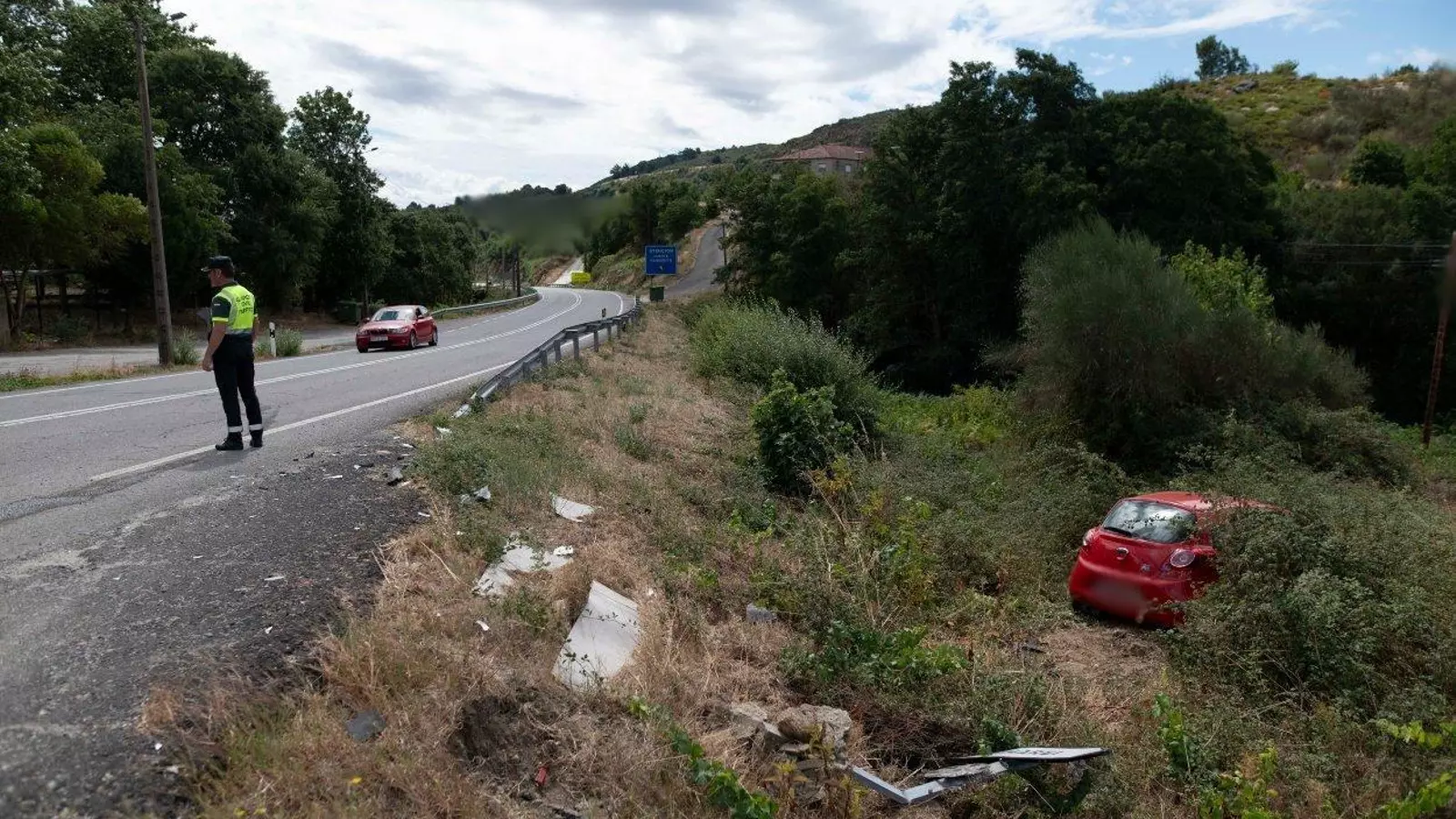 Ambos vehículos sufrieron el golpe, sin embargo uno de ellos se llevó la peor parte. Uno de los coches cayó por un terraplén tras el golpe. En su interior viajaban dos personas, un hombre que pudo salir por su propio pie, y una mujer, que, según el particular que llamó al servicio de emergencias, requería asistencia sanitaria y que posteriormente fue evacuada en ambulancia