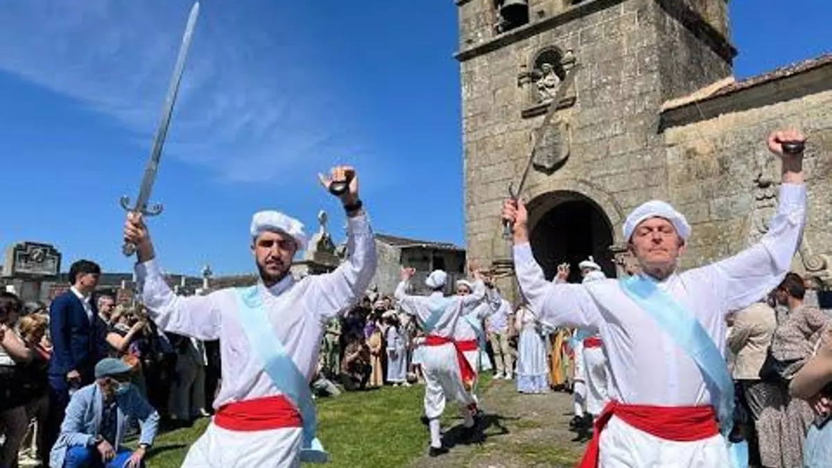 De la Praza da Picota arrancó la procesión encabezada por los danzantes. Tras ellos, Eva y Adán, el grupo de gaitas de Laza, la charanga Caliqueños, Abraham, Isaac, el ángel, el ramo con el gallo y toda la comitiva, en la que cada una de sus piezas tienen un significado histórico. Las calles de Laza se convirtieron en el escenario del sacrificio de Isaac, las danzas y la lucha de los moros y cristianos, como la carrera de los danzantes: el ganador tendría el privilegio de bailar con Eva. Y así fue, por la tarde, acompañados de la charanga Támega.