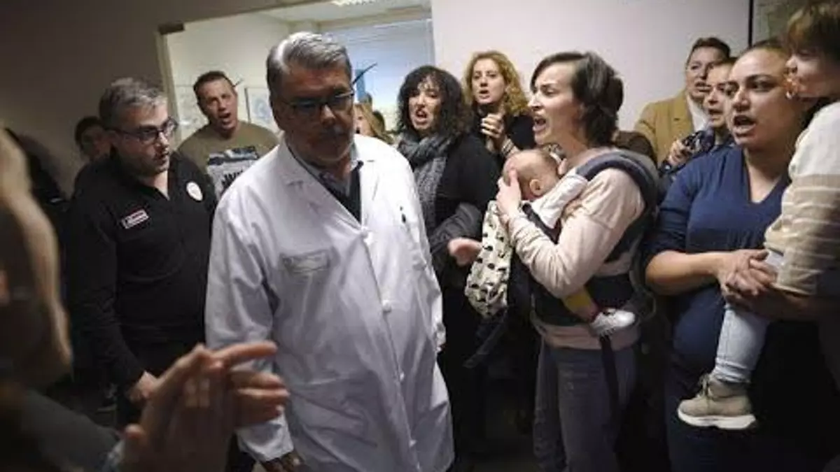 El gerente del hospital abandonó este lunes el centro entre gritos de "dimisión y cobarde". Explicó a las personas encerradas allí que ya había trasladado su petición de ver al conselleiro de Sanidad, pero que aún no había obtenido respuesta.