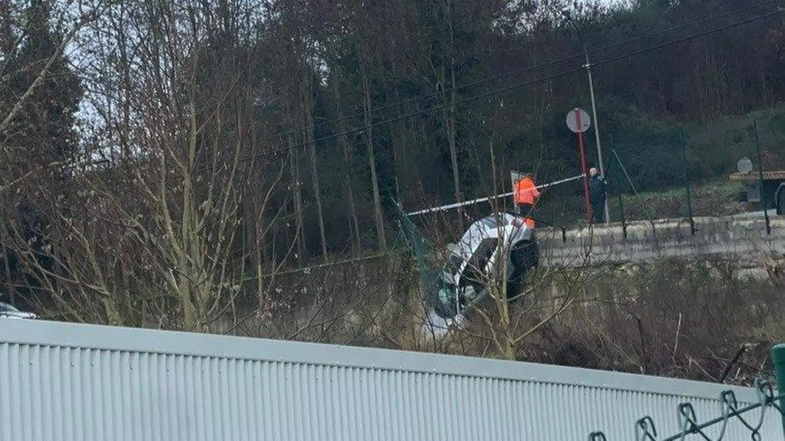 Un coche gris se ha salido de la vía y se ha precipitado por un terraplén. Una valla de un terreno, que había en ese punto de la cuneta por el que se salió el coche, impidió que se cayera por un terraplén de unos tres metros de altura. Por el momento se desconocen las causas y si hay personas heridas.