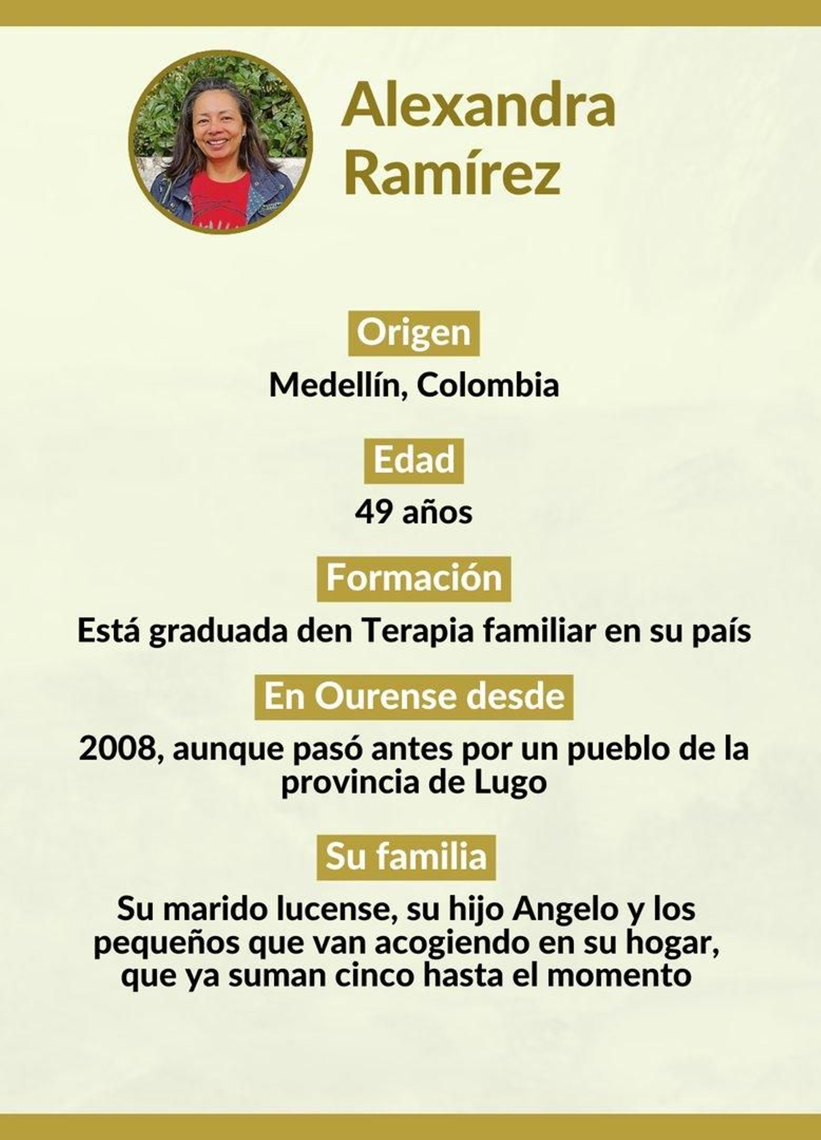 Llegó Alexandra Yomara Ramírez Arrieta a la provincia de Lugo en 2008. “Fue por amor”, sonríe con palabras. Su vida en Medellín era “trabajar en banca, la universidad y su grupo de amigas”, aclara. Un día la pandilla, al verla cumplir años sin pareja, decide hacerle una jugada. “Me tomaron unas fotos y me apuntaron en una página de solteros”, comenta. “Me consiguieron a mi esposo con treinta y dos años”, añade. La preselección la hicieron las camaradas y ella estuvo siendo invitada a citas, a veces presenciales, a veces a través de la pantalla. “Solo me cuadró mi esposo”, dice, “este va a ser el padre de mis seis hijos, me encanta”, remata.