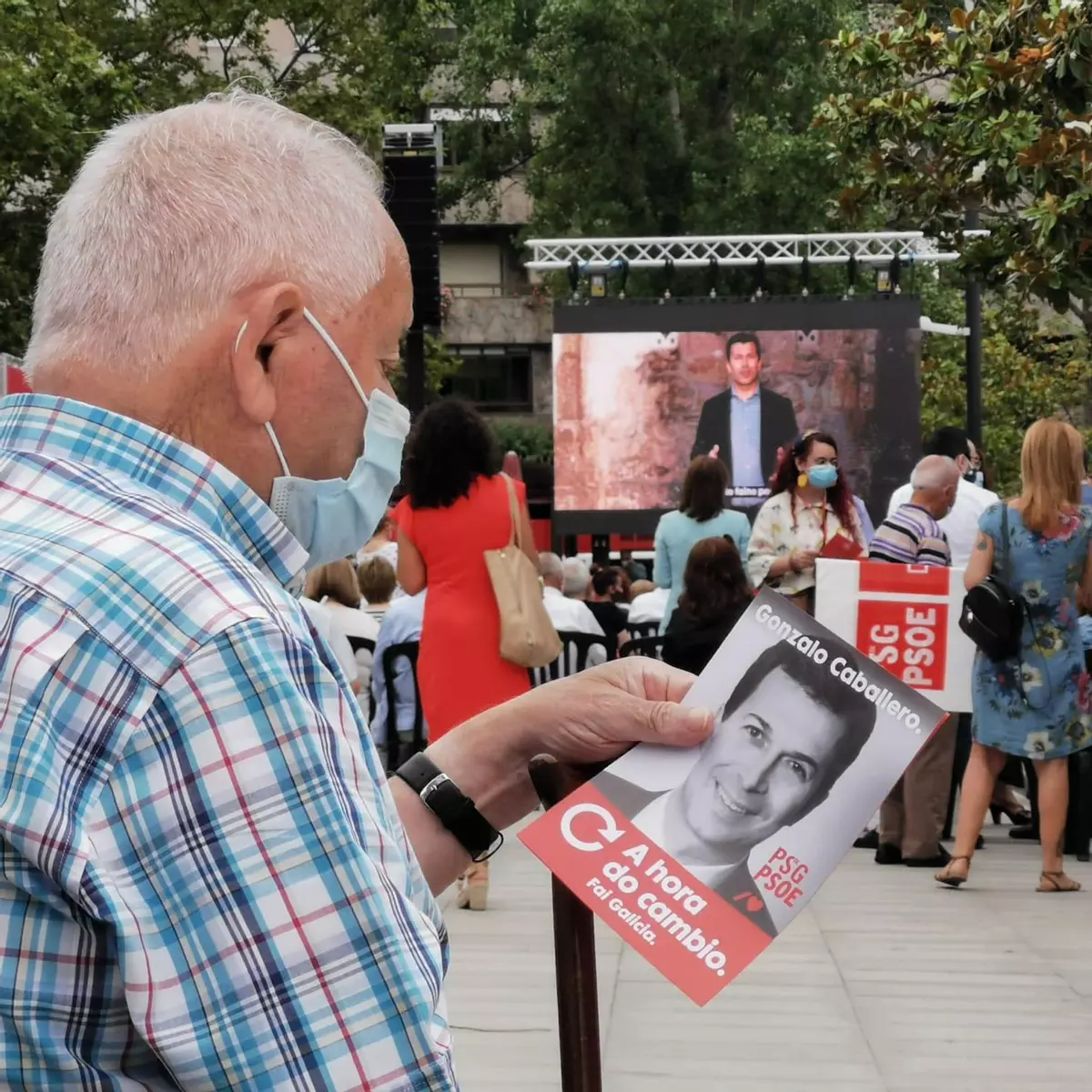 32/60 OURENSE (XARDÍNS DO POSÍO). 27/06/2020. OURENSE. El presidente del gobierno, Pedro Sánchez, acompaña al candidato a la Xunta de Galicia, Gonzalo Caballero y a Marina Ortega en un mitin del PSdeG-PSOE. FOTO: ÓSCAR PINAL Gonzalo Caballero