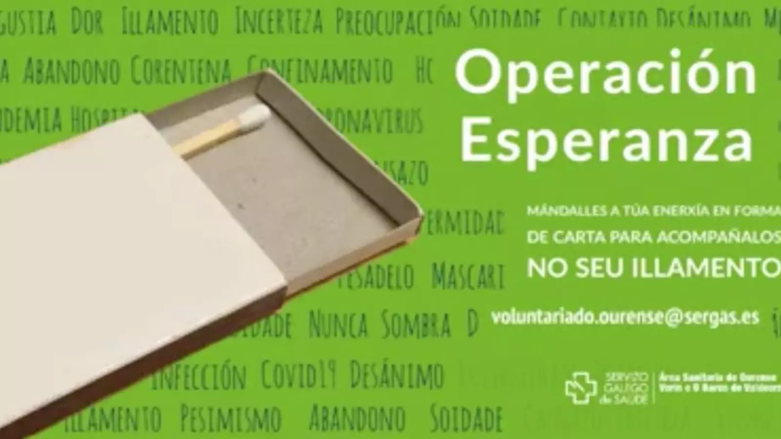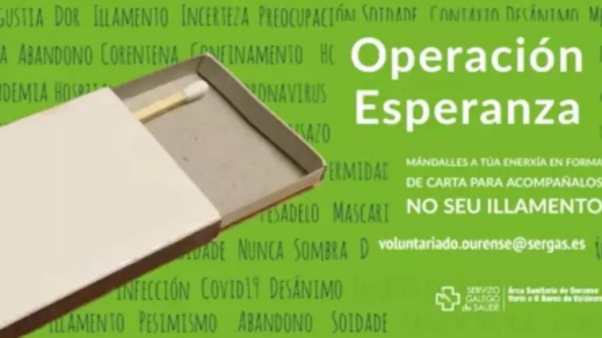 Los hospitales de Ourense, Verín y Valdeorras han habilitado un canal para que los ciudadanos puedan enviar cartas o mensajes de apoyo a los pacientes que permanecen aislados con coronavirus. Se ha bautizado como Operación Esperanza, y busca mitigar la soledad de estas personas que no pueden recibir visitas de familia ni amigos.