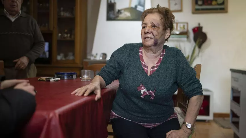 Feliciana Romero, con heridas en la cara tras el ataque de los perros (Foto: Xesús Fariñas).