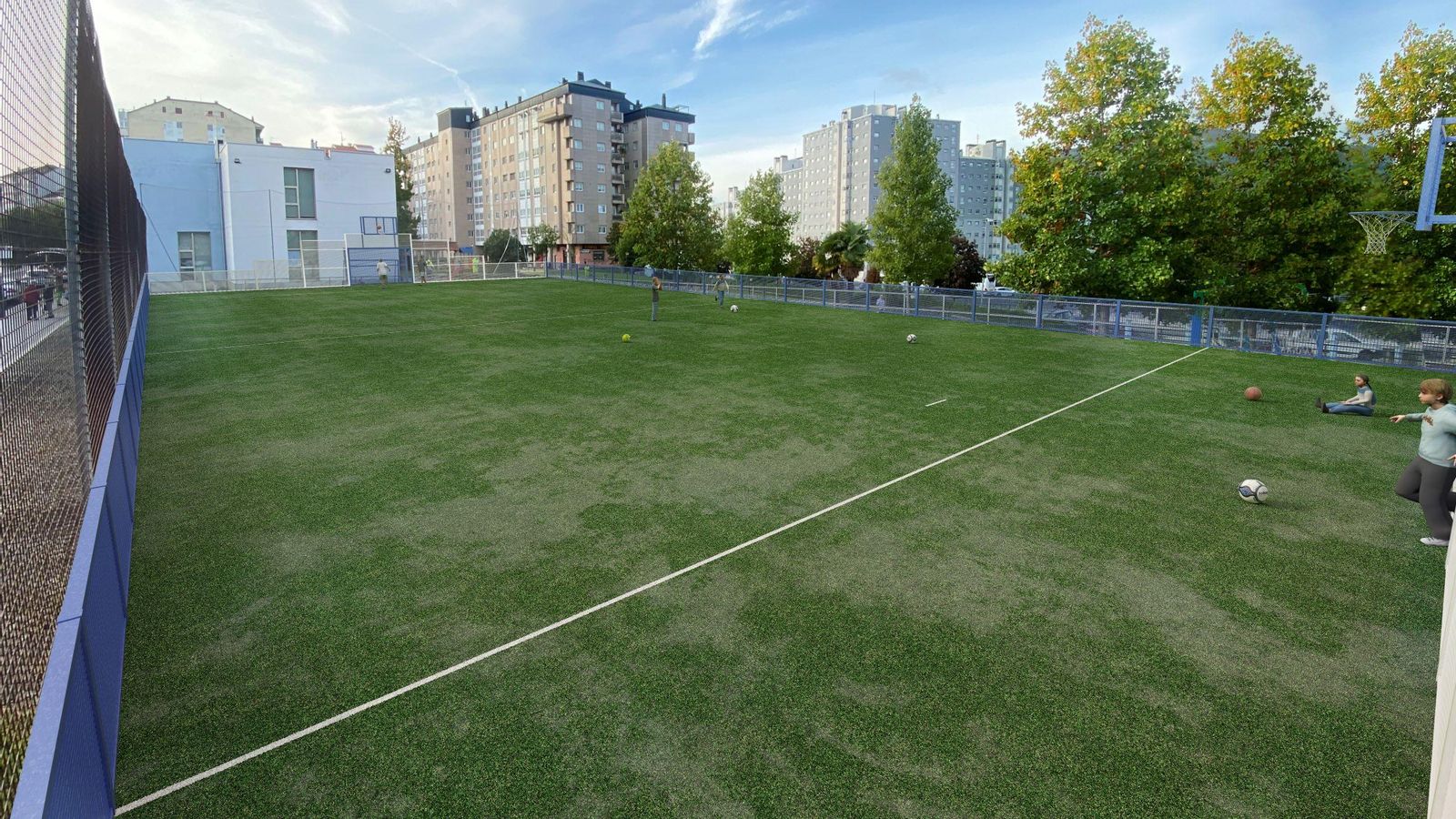 El equipamiento se dota de porterías, tableros de baloncesto con aros macizos y un césped innovador que recupera su estado original después de cada bote. Todos los complejos contarán con medidas antivandálicas.