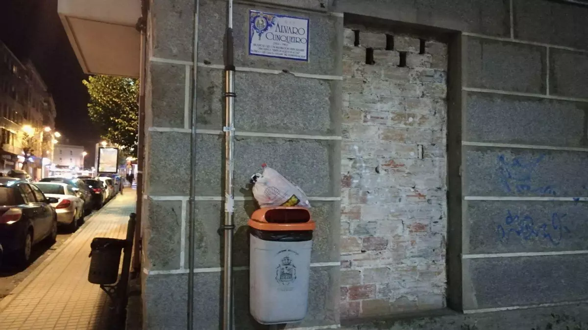 La limpieza de las papeleras no debe ser igual en todas las calles de la ciudad, y en la imagen comprobamos como las debe haber de primera y segunda. Mientras en Ramón Puga se limpian cada día, en Alvaro Cunqueiro, a tan solo un metro de distancia de la calle anterior, esta bolsa de basura estuvo tres días encima de la papalera. Ahora también hay que decir que bastante guarra es la persona que la dejó, porque a escasos metros tiene unos contenedores y le debería pesar mucho andar hasta ese lugar.