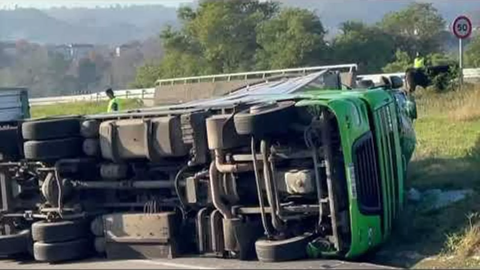 El punto de partida fue Monterrei, en Verín, pero cuando el camión estaba saliendo de la vía volcó en el margen izquierdo.