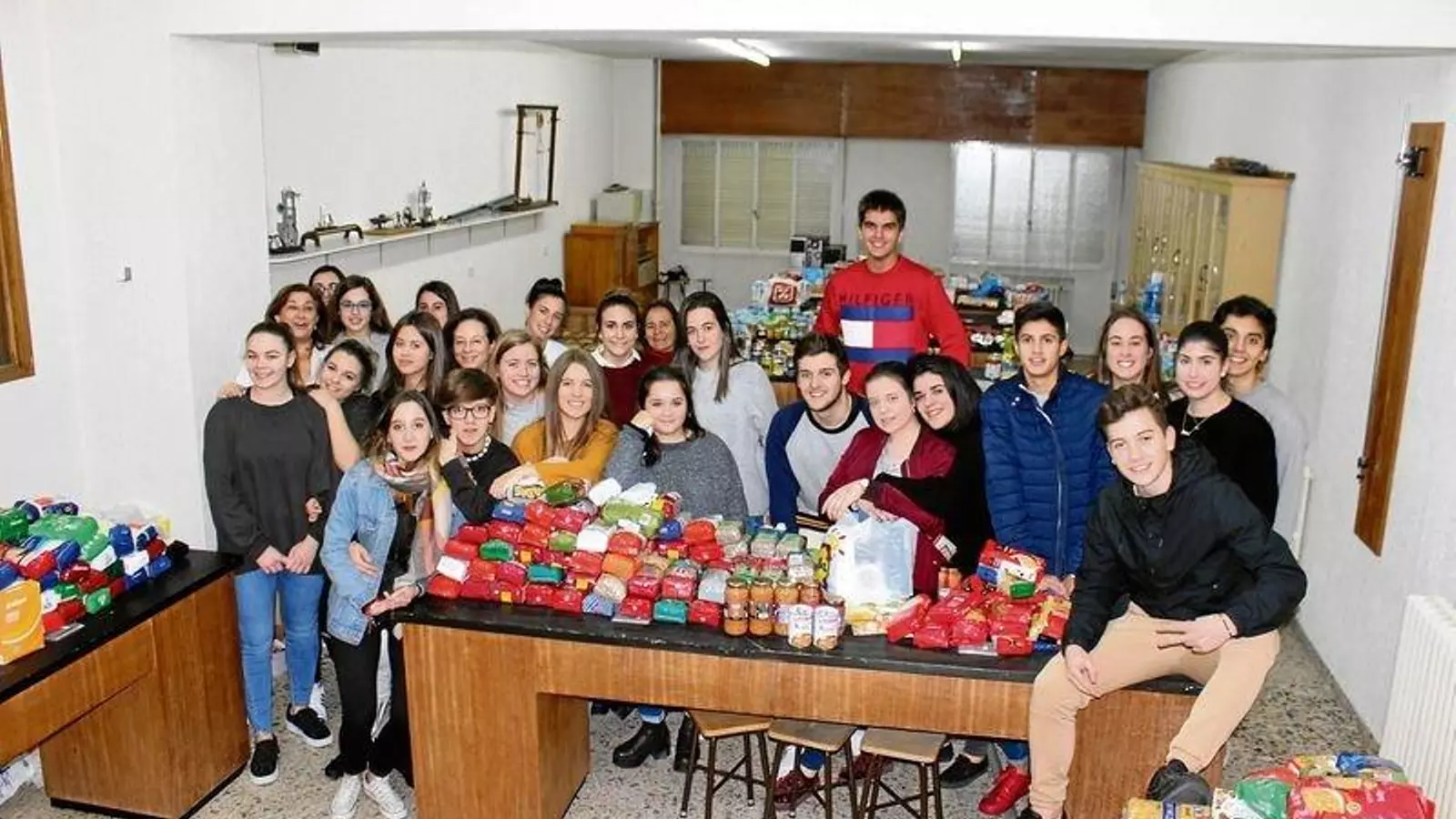 Los alumnos de Bachiller y Enseñanza Secundaria se encargan de hacer las cajas de alimentos que se entregarán a las parroquias de la ciudad para que desde ahí se repartan a las personas que se encuentran con un mayor grado de necesidad.