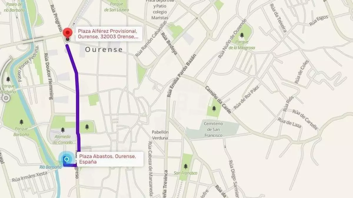 El tramo que estará cerrado al tráfico hasta la finalización de la actuación de la Orquesta Panorama, que se estima a las 1:30 horas de la madrugada según el aviso municipal, es el que comprende desde la bajada de la Plaza de Abastos a la Plaza Alférez Provisional.