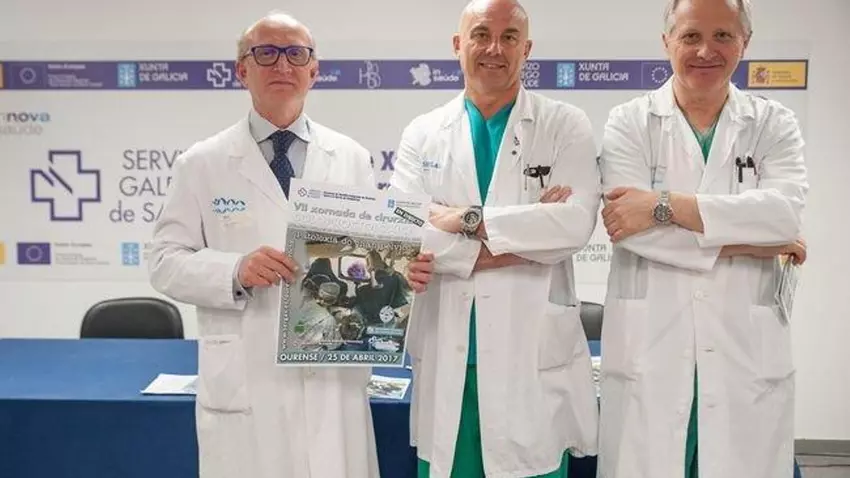 El Complexo Hospitalario Universitario de Ourense acogerá el próximo martes, día 25, la séptima jornada de cirugía proctológica en directo, organizada por la unidad del servicio de Cirugía, que en esta ocasión abordará "as mais modernas técnicas cirúrxicas aplicables ás patoloxías do chan pélvico e en especial do recto" según aseguró el presidente del comité organizador y jefe de sección de Cirugía, Alberto Parajo Calvo, que estuvo acompañado en la presentación por el gerente del CHUO, Dionisio López y Manuel García, jefe del servicio de Cirugía.