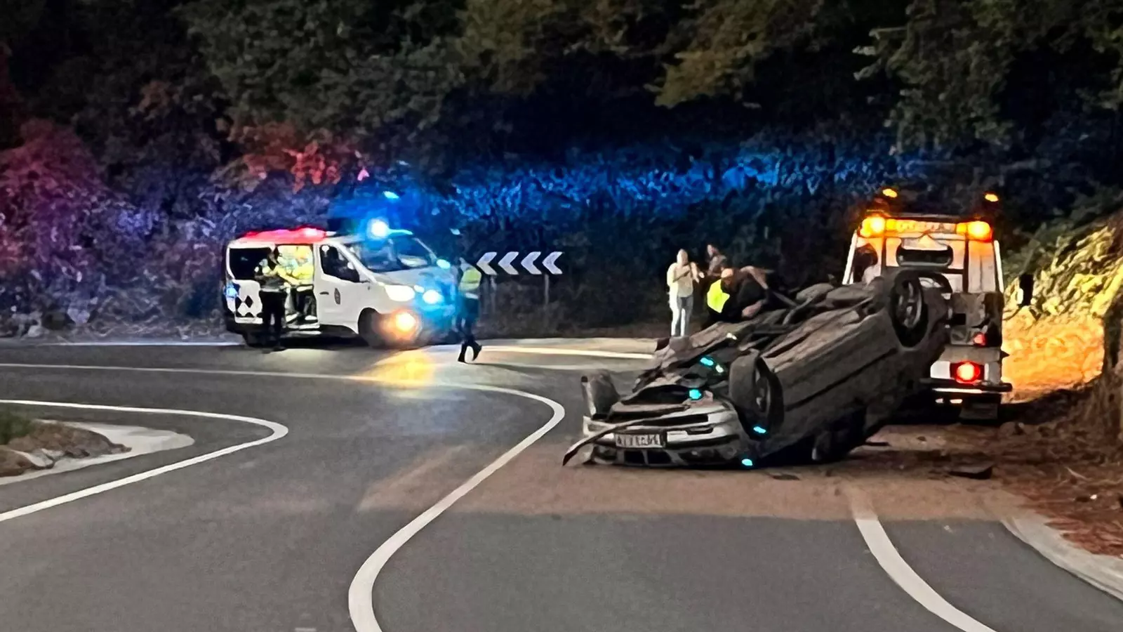 Un vehículo volcó en la carretera de Reza, a la altura de las curvas de la depuradora, a las 06,50 horas de la madrugada de este domingo. Los dos ocupantes del coche resultaron ilesos en el accidente de tráfico.