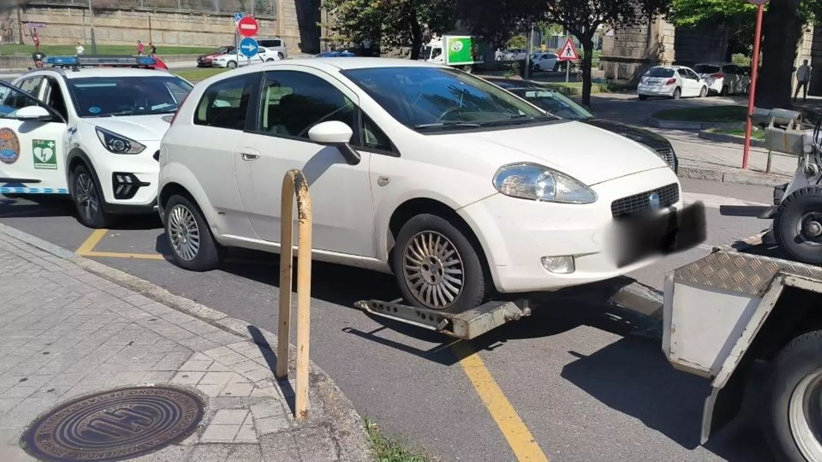 El conductor, de 48 años, fue identificado por la Policía Local de la ciudad. Los agentes comprobaron que el hombre no tiene el permiso de conducir y que el coche no tiene seguro ni ha superado la ITV.