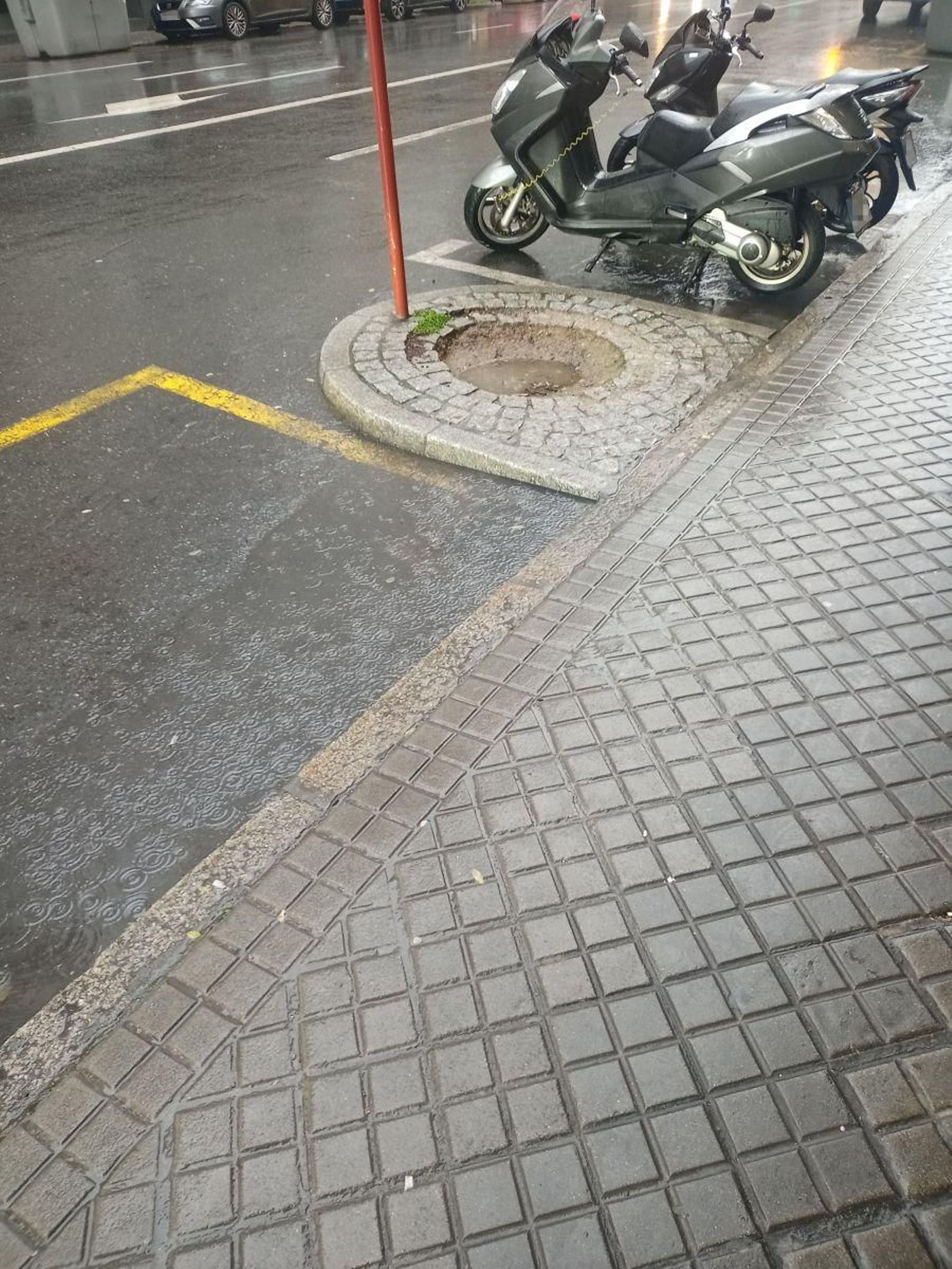 Desde hace años en la calle Nosa Señora da Sainza, los sumideros están taponados y, ante la falta de árboles, los huecos destinados para ellos se convierten en un barrizal cada vez que llueve.