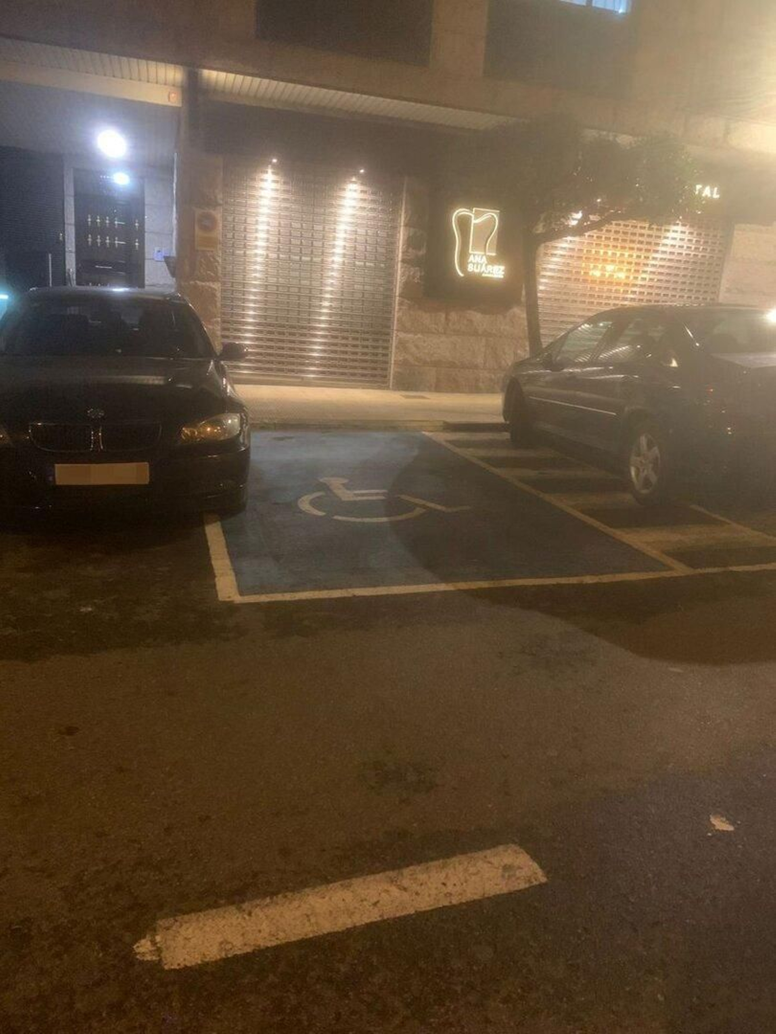 En la imagen se puede comprobar el poco respeto que hay hacia los usuarios de las plazas de discapacitados en A Valenzá. Si aparcas no puedes salir del coche y todos los días y a todas horas lo mismo, si quieren además de la plaza, les dejo mi discapacidad.