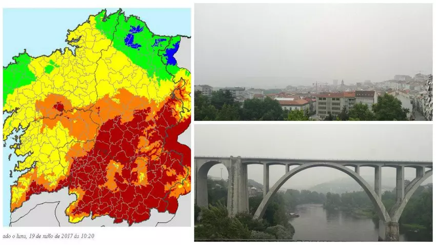 Según los expertos, el trágico incendio en el centro de Portugal que acabó con la vida de 64 personas, podría contribuir a que la humareda se haya extendido hasta nuestra provincia. Además, el índice de riesgo diario de incendio forestal es extremo en Ourense, superior al 81%.