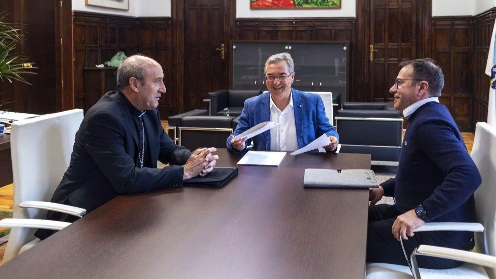 La conservación y mejora del patrimonio histórico-artístico ourensano de la diócesis de Astorga centró la reunión que el presidente de la Diputación provincial, Luis Menor, mantuvo con el obispo de Astorga, Jesús Fernández. La colaboración de ambas instituciones fructificará en 2025 en un convenio de colaboración que recogerá “as necesidades e achegas” con el objetivo de mantener “o noso patrimonio e a nosa historia”, según Luis Menor.