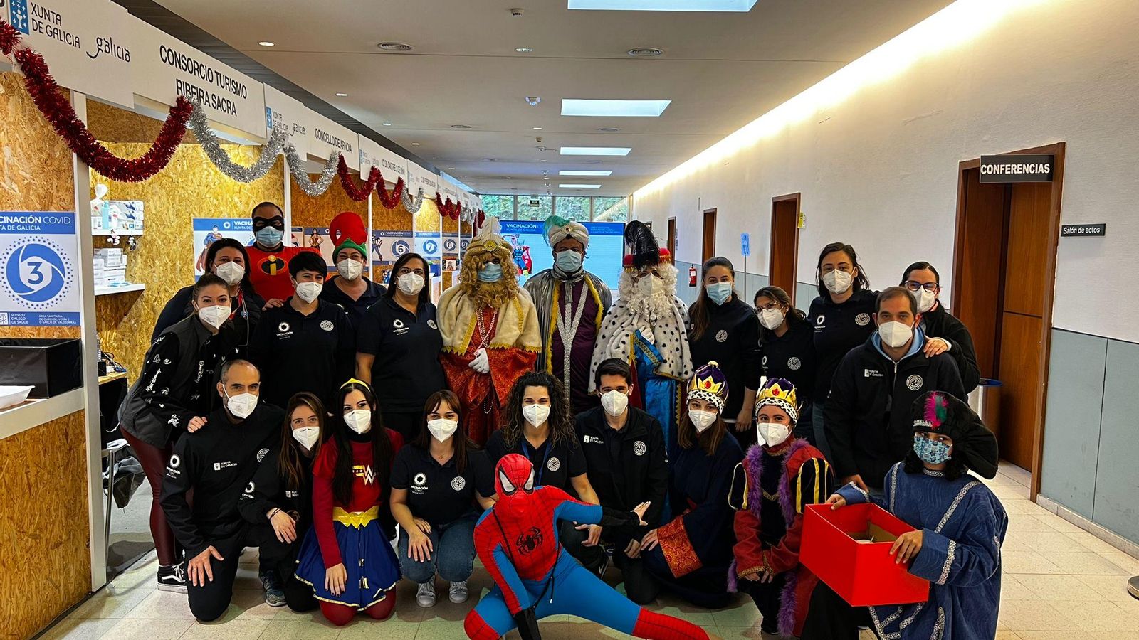 Los Reyes han hecho escala en el vacunódromo ourensano para sorprender a los más pequeños.