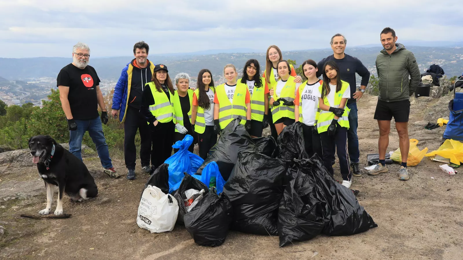 “Hacemos esto cada miércoles en diferentes lugares de Ourense y llevamos casi dos décadas colaborando con la limpieza del magosto. Parece que aquí suben miles de personas. No dudamos que muchos retiren los residuos que generan. Pero como veis, hay otra gran cantidad de personas que dejan muchos desechos”, lamenta Sánchez con los brazos en jarra, señalando con la cabeza en derredor. María Bravo, la otra profesora acompañante, guía a las chicas para depositar en las bolsas y baldes lo recolectado desde nuestra llegada. “Estas chavalillas tienen un toque heroico” afirma Gonzalo con orgullo acerca de las alumnas que no parecen haber caminado en pendiente semejante distancia, para de inmediato ponerse a laborar en la recogida.